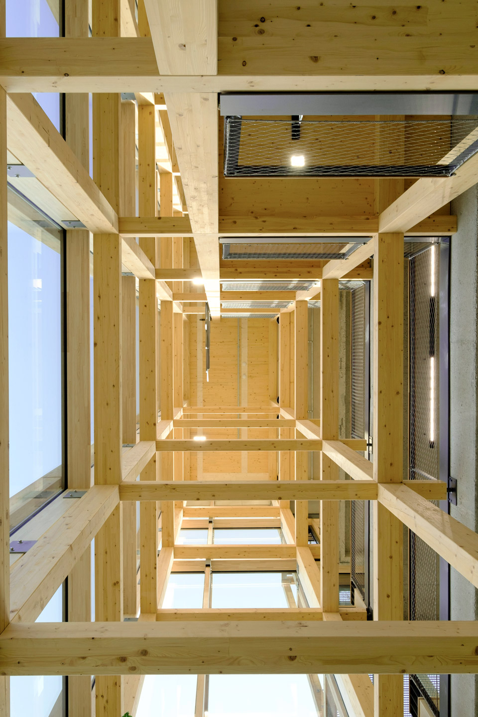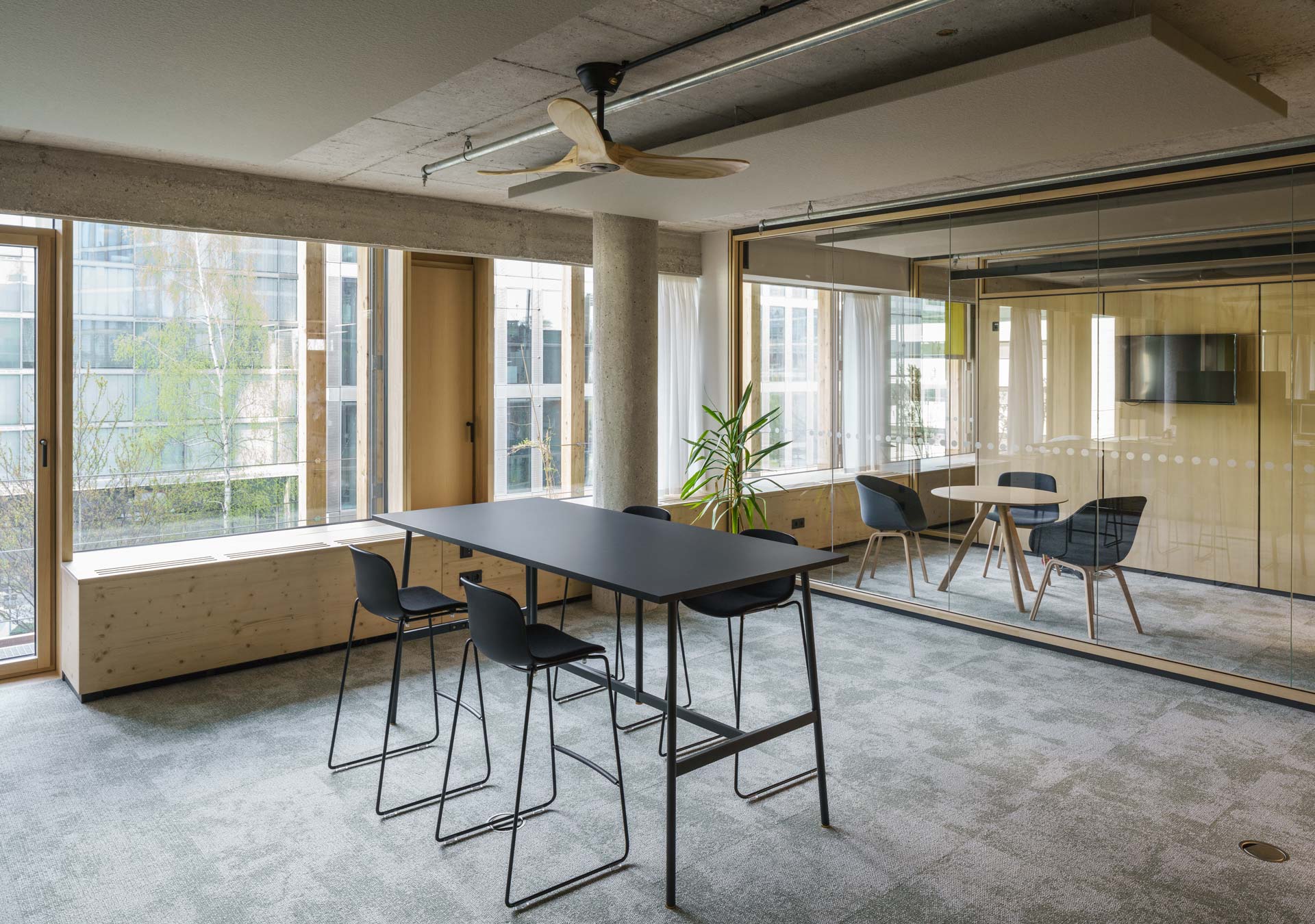 Le client vient d’acquérir un bâtiment existant pour le nouveau siège fédéral, l'a revitalisé et complété en économisant les ressources. Le concept est basé sur le désir de durabilité et une approche environnementalement responsable. Vu de l'extérieur, il reste caché que le noyau en béton de l'ancien bâtiment a été presque entièrement conservé. Une construction intégralement neuve aurait considérablement augmenté l'empreinte environnementale due à une consommation supplémentaire de ressources. Les deux étages supplémentaires sont en bois. Cela réduit à la fois le coût supplémentaire sur la statique existante et sur l' "énergie grise". Ceci contribuera à la diminution significative de l’empreinte environnementale de la construction, notamment son empreinte carbone.