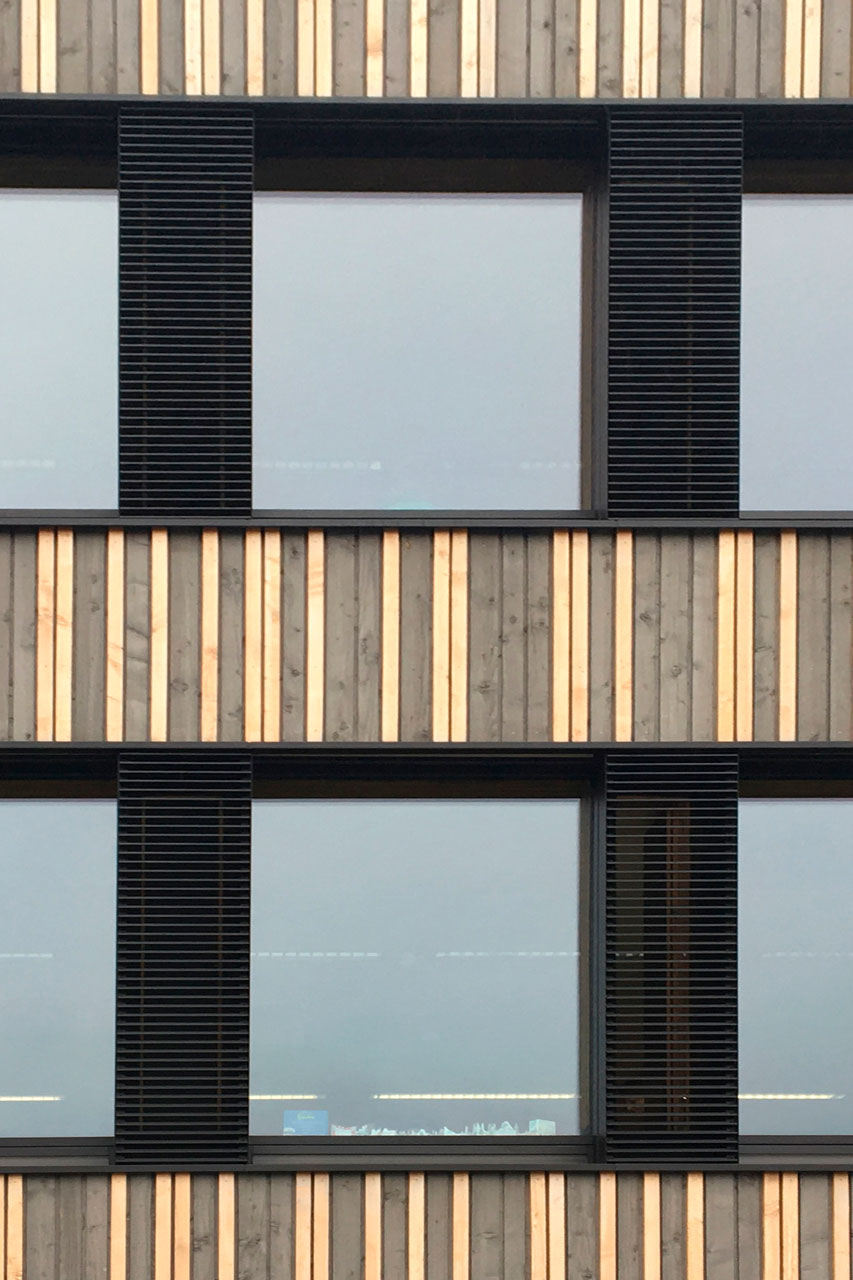 The goal in the planning of the construction of the new school building was to develop a largely user-independent ventilation concept, which offers both high air quality and good thermal comfort throughout the year. The ventilation concept for the classrooms is based on automated continuous basic ventilation. Intermittent ventilation is also an option by opening ventilation wings in between classes. The air supply outlets are integrated into the façade. The exhaust fan on the opposite side ensures a constant supply of fresh air of about 12m³/h per person at full occupancy. The acoustically effective air inlets are below the fixed glass windows directly in front of the radiators; the incoming air flows through them and heats up. This way fresh air enters the classroom at a temperature of 20°C without draft even in winter. A motion detector controls the ventilation system: The outside air passage opens and the exhaust fan starts only when a person enters the classroom.