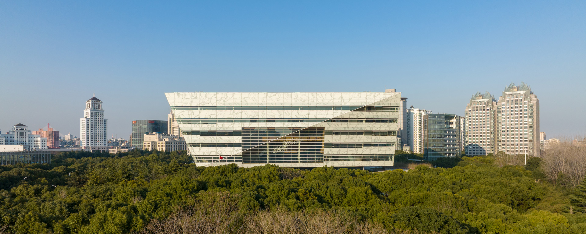 The new Shanghai East Library is located in Pudong District, the area of the city known for its iconic skyline, and will sit immediately next to Century Park –the largest park in the city spread over 140 hectares. The project is conceived as a singular monolithic object floating above the tree canopy within the park. The main library volume floats above two pavilions that will house a 1200 seat performance venue, exhibition and events space and a dedicated children’s library, that will all open up towards a series of landscaped courtyards and gardens. The project completes a trilogy of cultural projects alongside the Science & Technology Museum and the Shanghai Oriental Arts Centre – all which surround the centre of the Pudong Government – and sit alongside Century Avenue that links Century Park to the Business District that forms the now globally recognizable skyline of Shanghai.