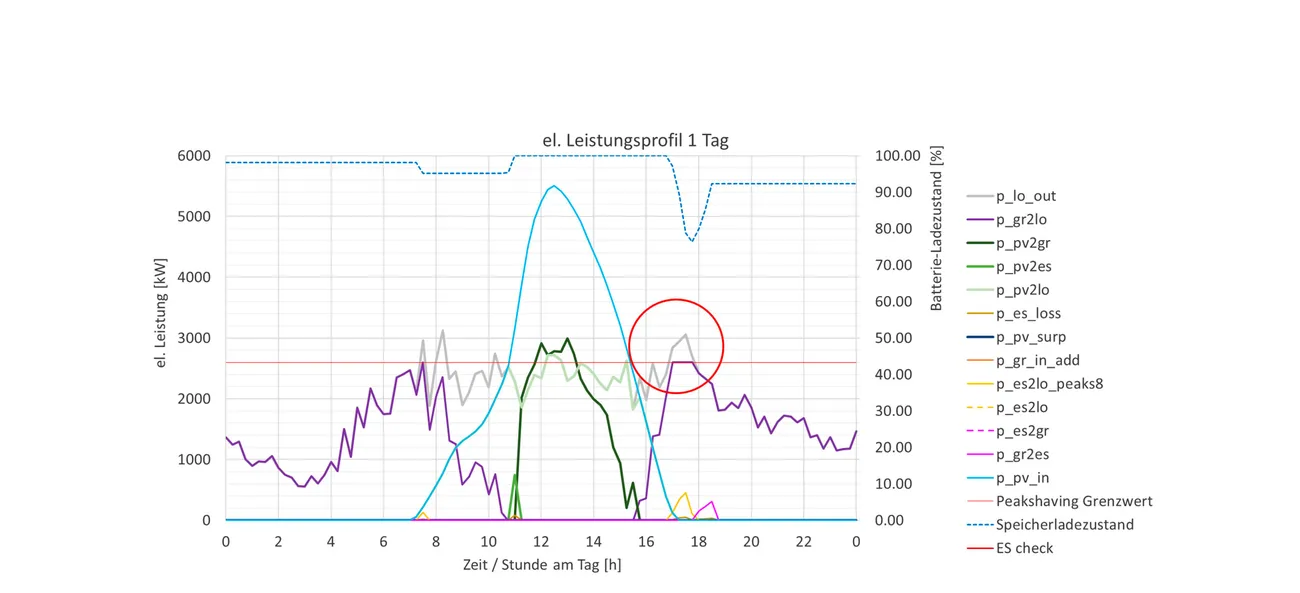 Pour déterminer les tailles économiquement optimales de l’installation photovoltaïque et de la capacité de stockage des batteries, Transsolar a utilisé un modèle de simulation pour le couplage dynamique de l'énergie photovoltaïque, du réseau électrique, du stockage de l'électricité et de la charge électrique, qui a déjà été utilisé avec succès dans d'autres projets industriels.