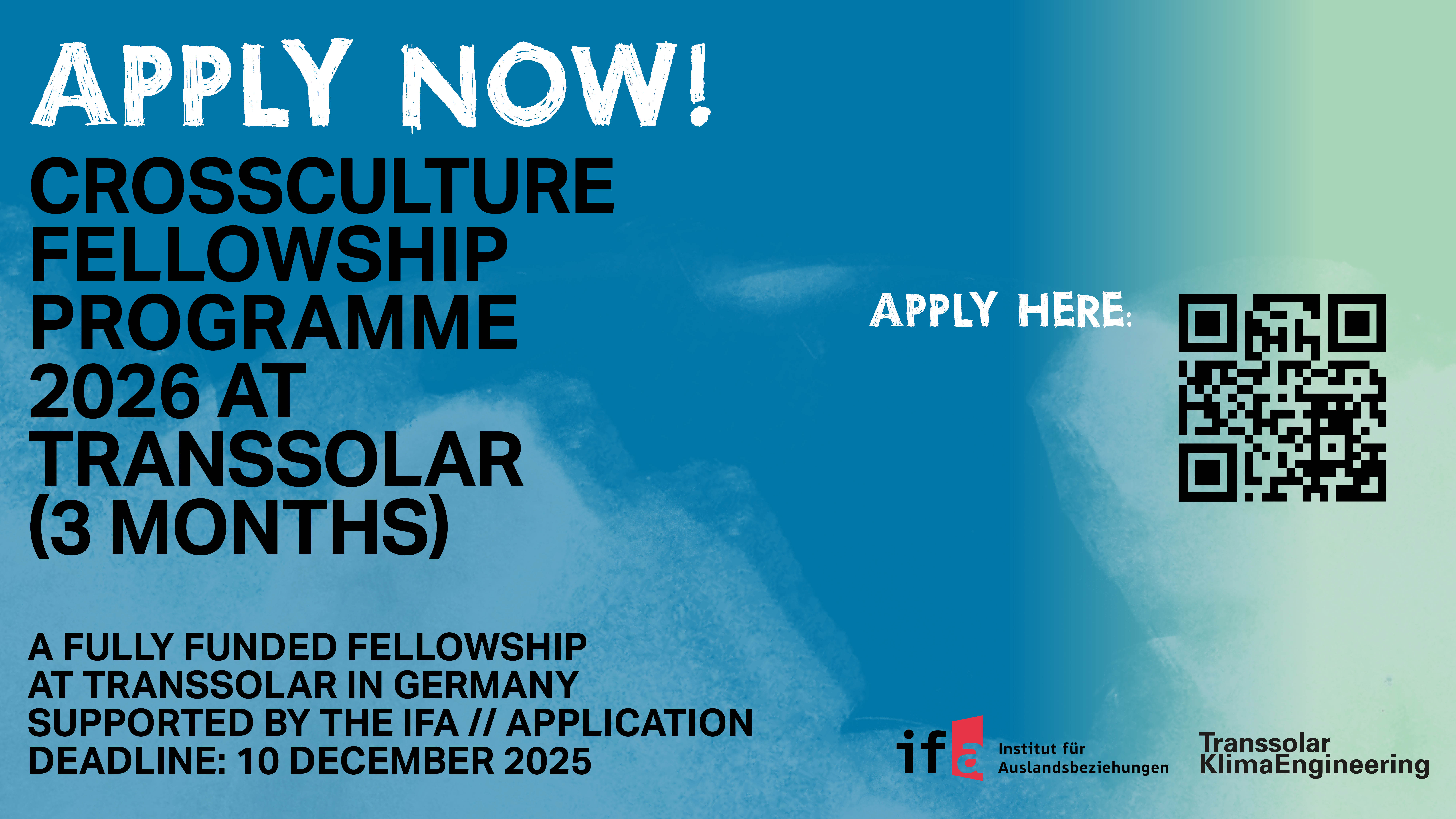 One of Transsolar's important values is sharing perspectives, knowledge and learning across cultures and borders. We are delighted to expand and pursue this value with this program. The Program is fully funded and will take place full-time over three months in the period between May until November 2026 at Transsolar in Stuttgart or Munich, Germany.