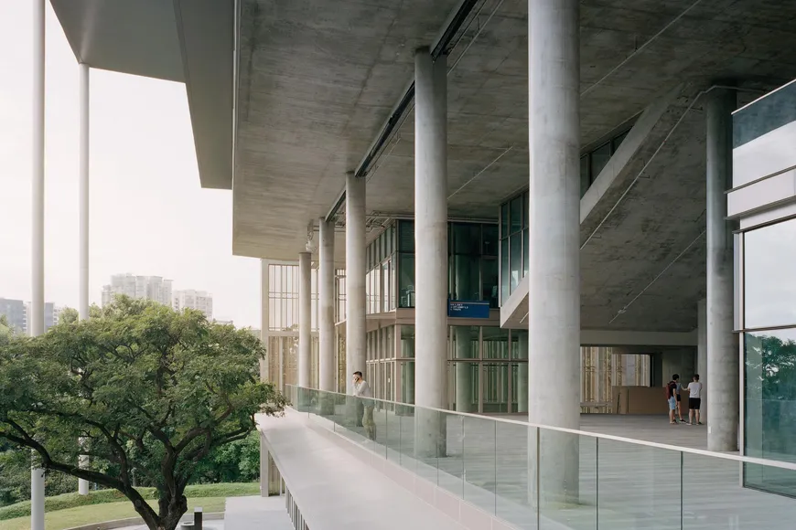 The architecture is very open and transparent. This openness allows spaces to flow freely across the envelope of the building, bringing the surrounding landscape in close proximity to interior spaces and vice versa. Access to nature was strategized with a list of design features and principles that included landscaping, greenery, water features, and the provision of outdoor and semi‐outdoor spaces as integral elements to the design of the building.