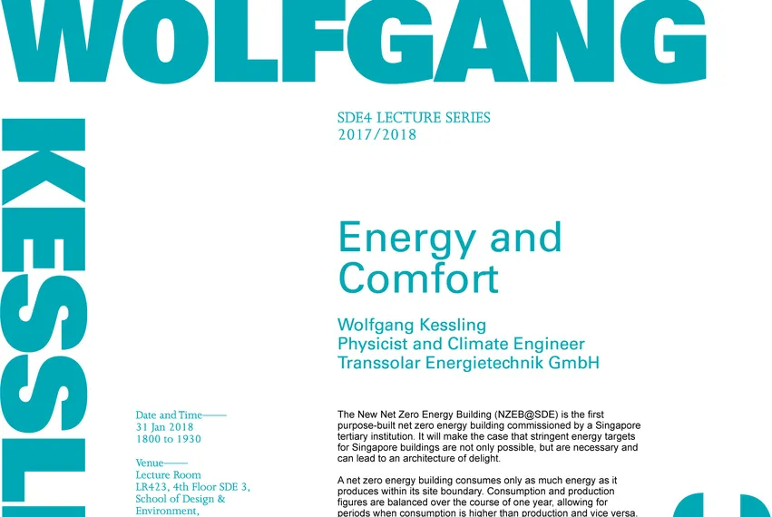 Wolfgang will hold his lecture about Energy & Comfort in the lecture series SDE4 at the School of Design & Environment. He will talk about new ways of defining thermal comfort and rethinking how to do more with less.