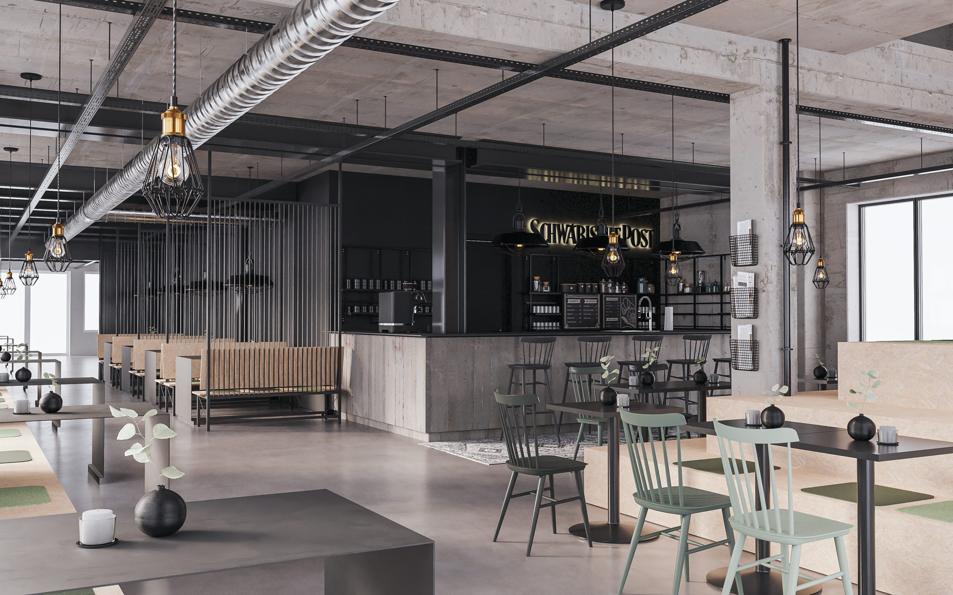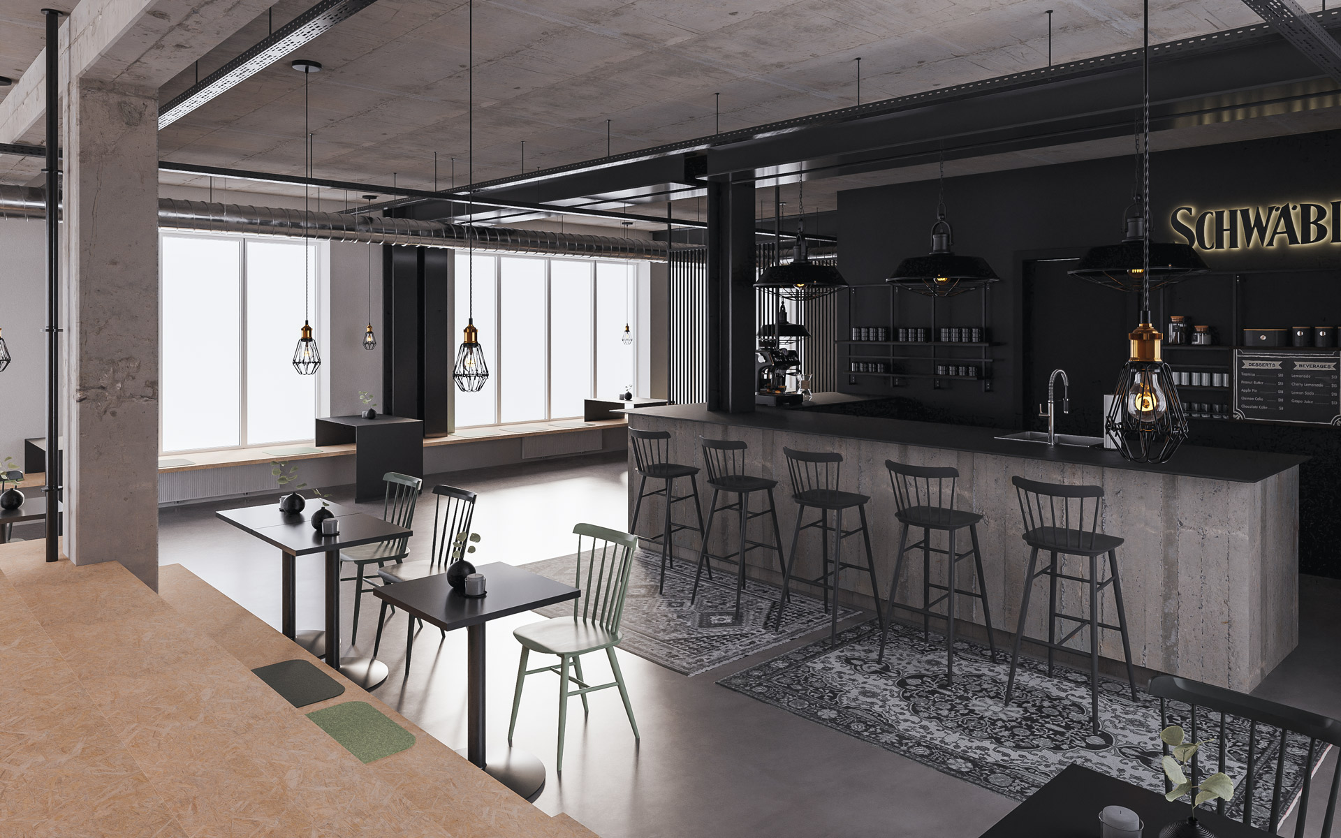 To minimize heating requirements, the building envelope has a 16 cm external insulation and the windows have selective triple glazing. The new windows have an optimized frame proportion to allow as much daylight as possible into the rooms as well as preserving the character of the building. The offices and café are ventilated via vertically installed decentralized supply and exhaust air units next to the window with integrated heat recovery.