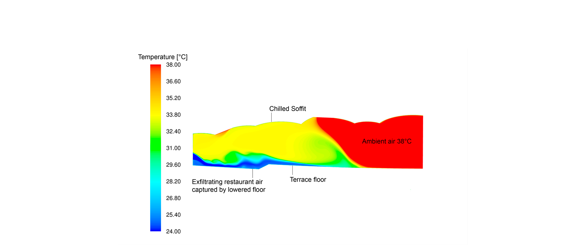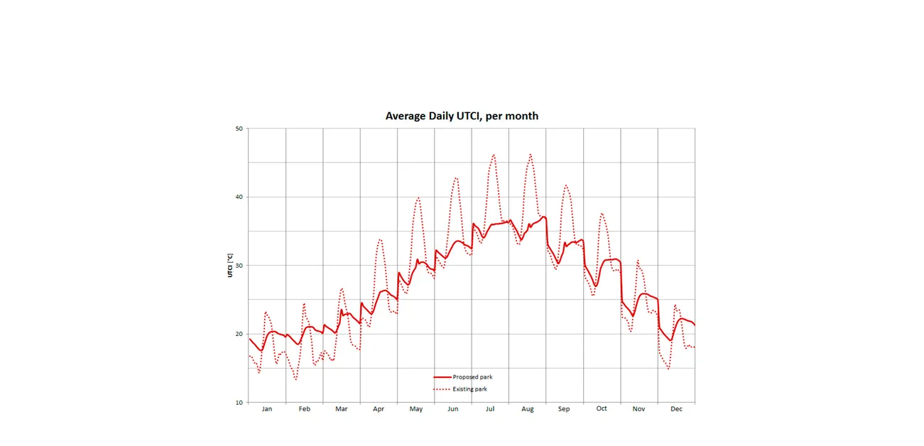 To further augment comfort in the lower park and create a truly unique park experience, Transsolar analysed a series of climate-appropriate comfort measures using dynamic thermal simulation and CFD, ranging from passive to active measures. The resulting solution was radiant cooling which would integrate seamlessly with the strong architectural narrative.To balance the demand for comfort and energy consumption, the team selected comfort islands or areas where comfort measures would be most critical. Each comfort island was then carefully considered and adjusted to maximize its comfort potential on an hourly and monthly basis. Energy demand from the active cooling system is offset with photovoltaics located on-site. Another critical aspect of the project was the contradiction between needing more sunlight for plants and less sunlight for visitors; this was navigated with Transsolar’s daylight analysis. Lastly, for the front-of-house spaces, Transsolar provided Estidama (Abu Dhabi green building rating system), energy and daylighting recommendations.