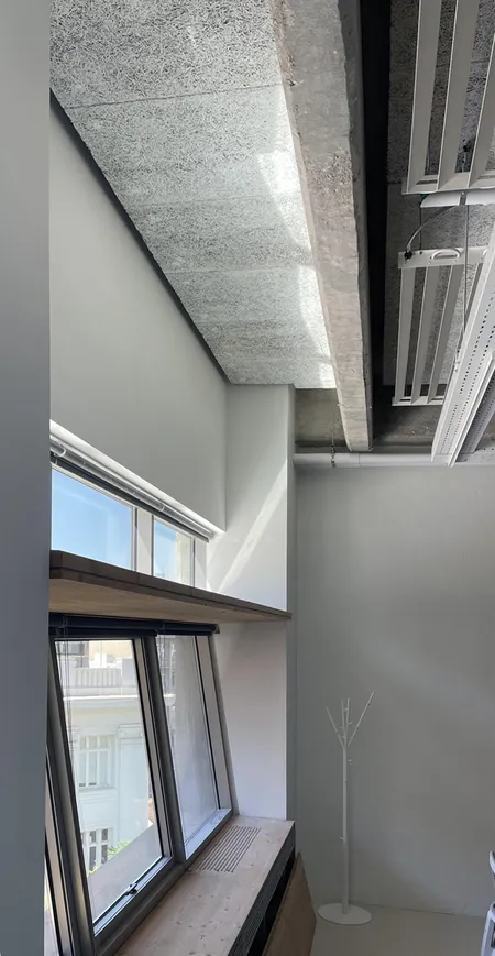 The inner topside of each light shelf is coated with a highly reflective mirror surface that redirects sunlight entering the upper part of the window towards the ceiling. The bright ceiling diffuses this light, increasing brightness inside the space. This allows natural daylight to penetrate deep into the room without glare, reducing the need for artificial lighting.