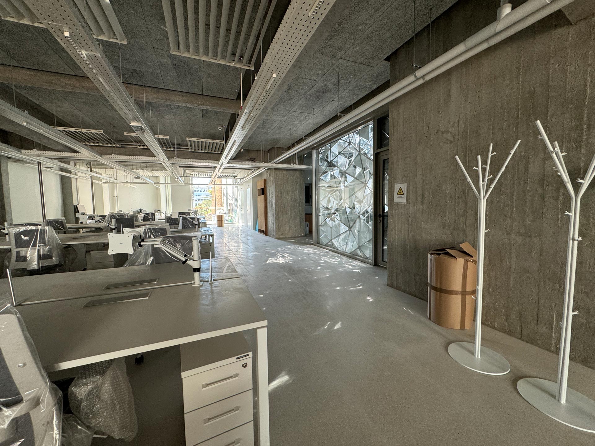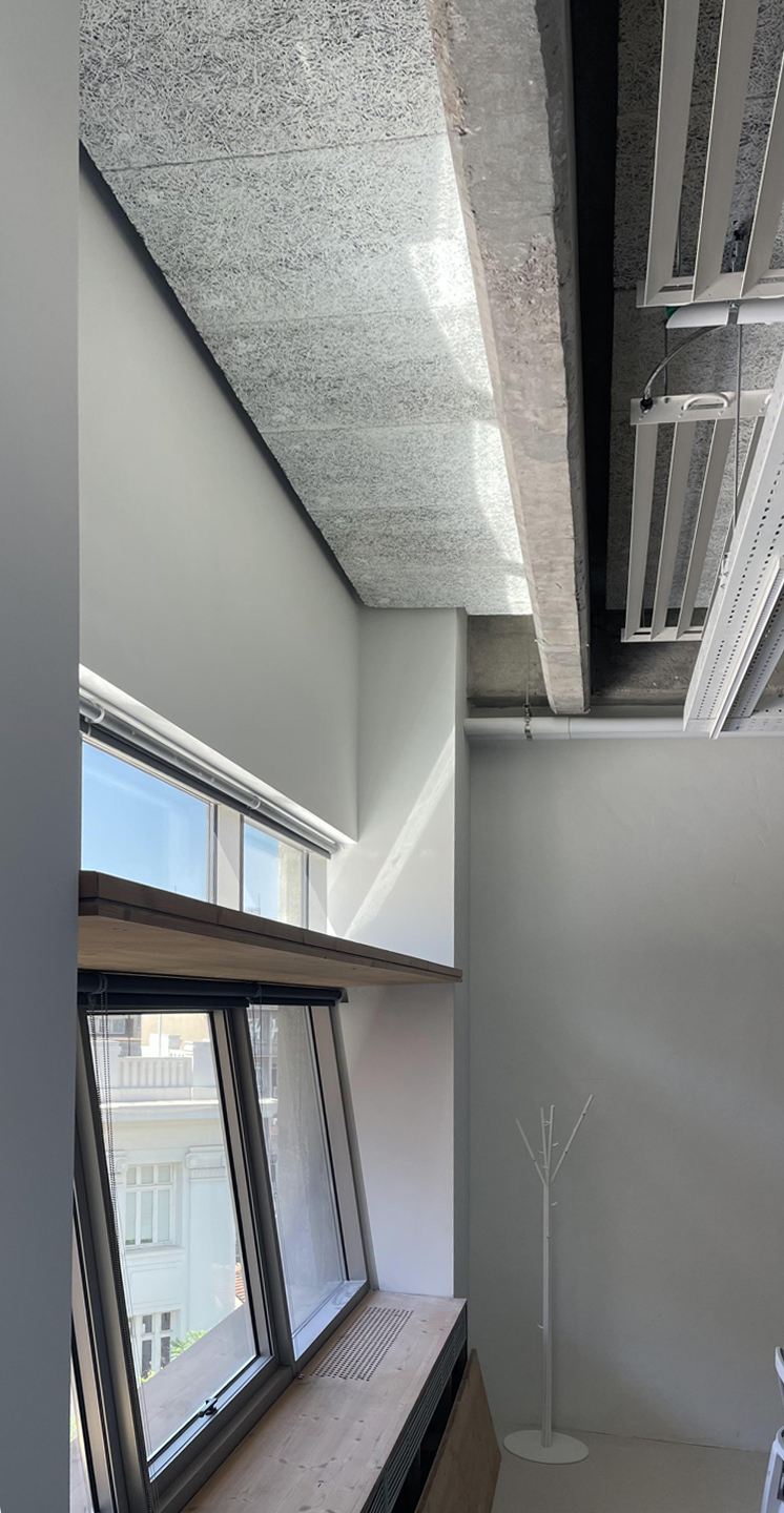 To achieve the highest level of comfort, radiant ceiling panels are installed in all office floors, creating a cooling effect in the summer through the circulation of chilled water. The conditioned air is supplied through displacement ventilation units that are discreetly integrated into the façade parapets, improving air quality and hygiene. This design eliminates the need for air ducts, shafts, and technical rooms which would reduce usable area and the floor to ceiling height.