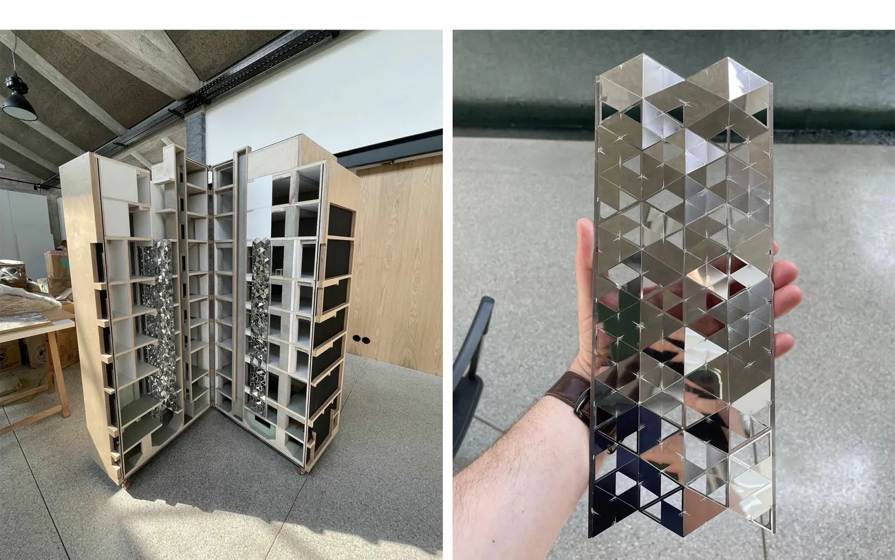 right: One of the modular kaleidoscope cladding panels, developed as part of the daylight mockup.