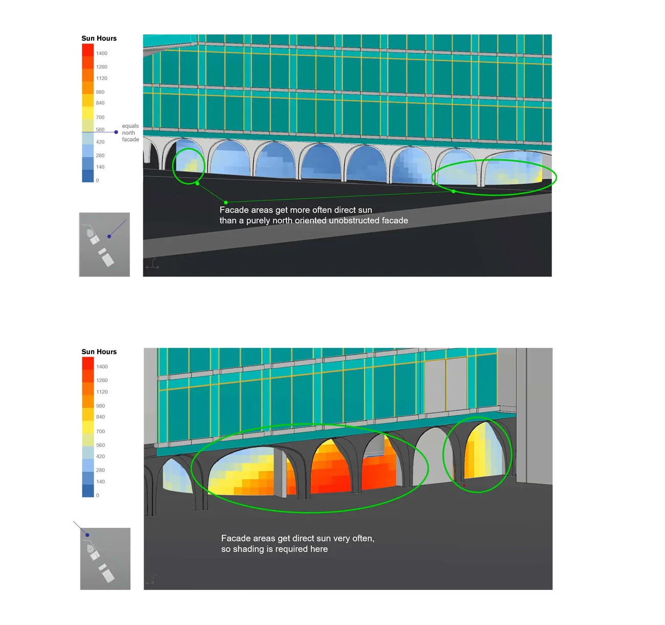 The Cité du Temps is the Swatch and Omega Clock Museum, an 80 x 17 x 28 m (262 x 56 x 92 ft) fully glazed cuboid with four floors and a hipped roof supporting the photovoltaic elements. External slats, controlled by solar radiation, provide shade for the glass façade. On the ground floor, curved arcades lift the cuboid up into the sky; below them is the open entrance area. The two museums and showrooms dedicated to Swatch itself are located on the upper floors: The "Omega Museum" on the first floor and "Planet Swatch" on the second. The Nicolas G. Hayek Conference Hall with its elliptical shape and mosaic façade protrudes at the fourth floors. The hall is used for Swatch Group internal purposes only. The Cité du Temps unites 18 subsidiary brands and acts as an interface between Swatch and Omega: the building intersects with the canopy of the Swatch headquarters.
