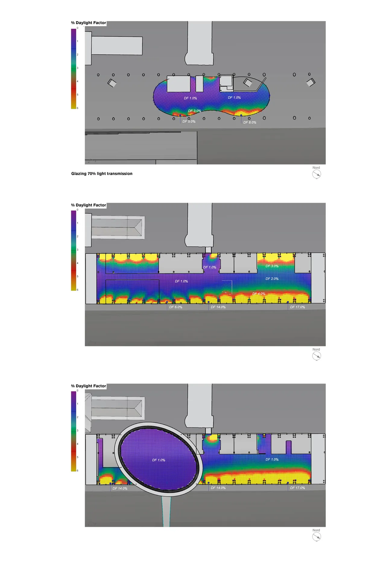 The museum is expected to attract a large number of visitors. Depending on them the demands for the indoor climate will change quickly. The suspended cooling/heating ceilings offer a system for room temperature control with quick response. The rooms are thus efficiently conditioned by water-bearing system and not by air. This allows airflow to be reduced to the hygienically necessary basic level, saves energy in electricity and allows smaller ducts, resulting in greater comfort with less risk of draughts. The ventilation system controls the supply air according to the needs and is equipped with highly efficient heat recovery.