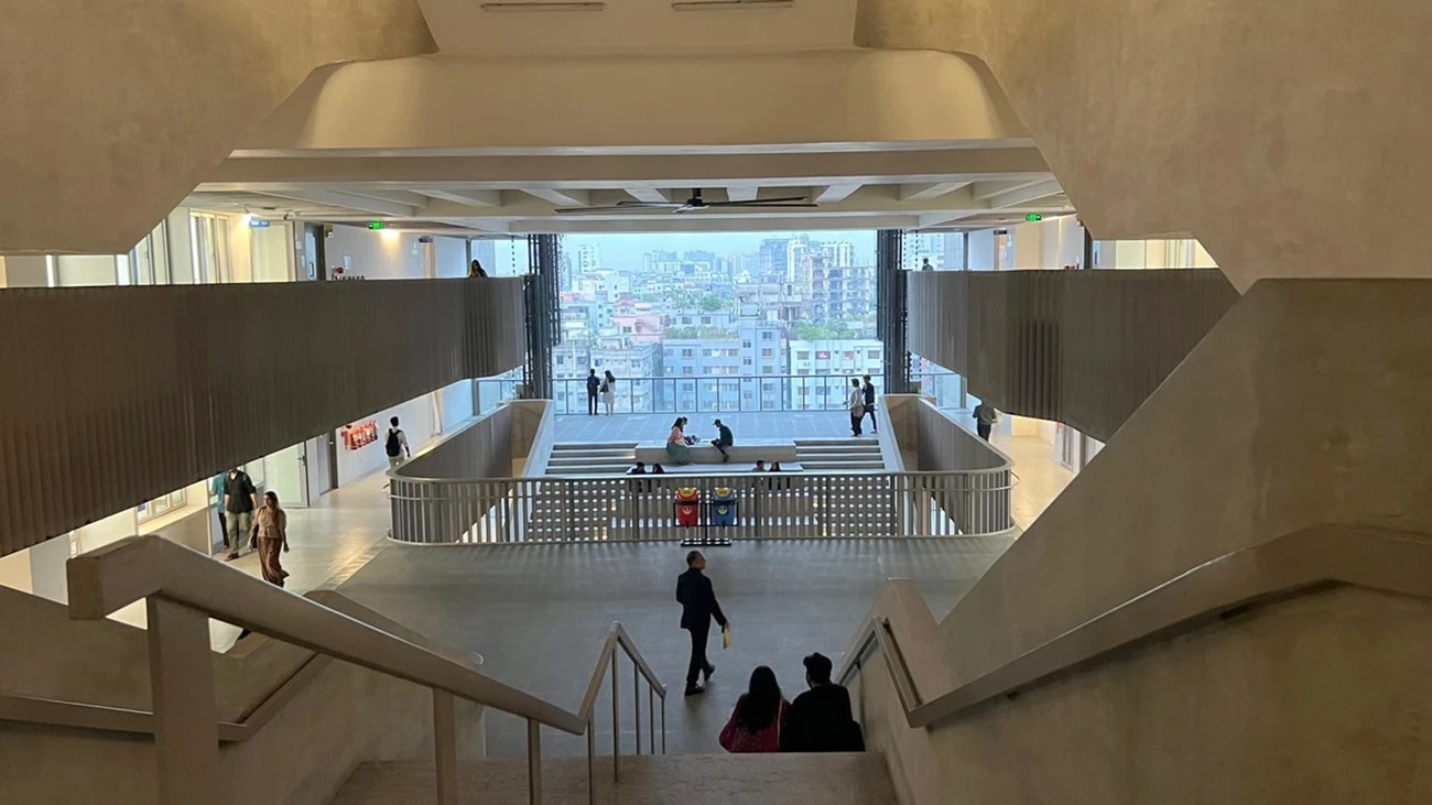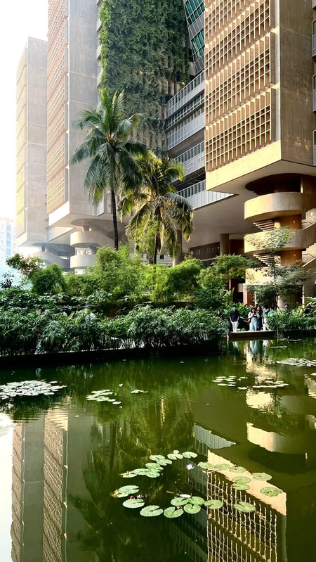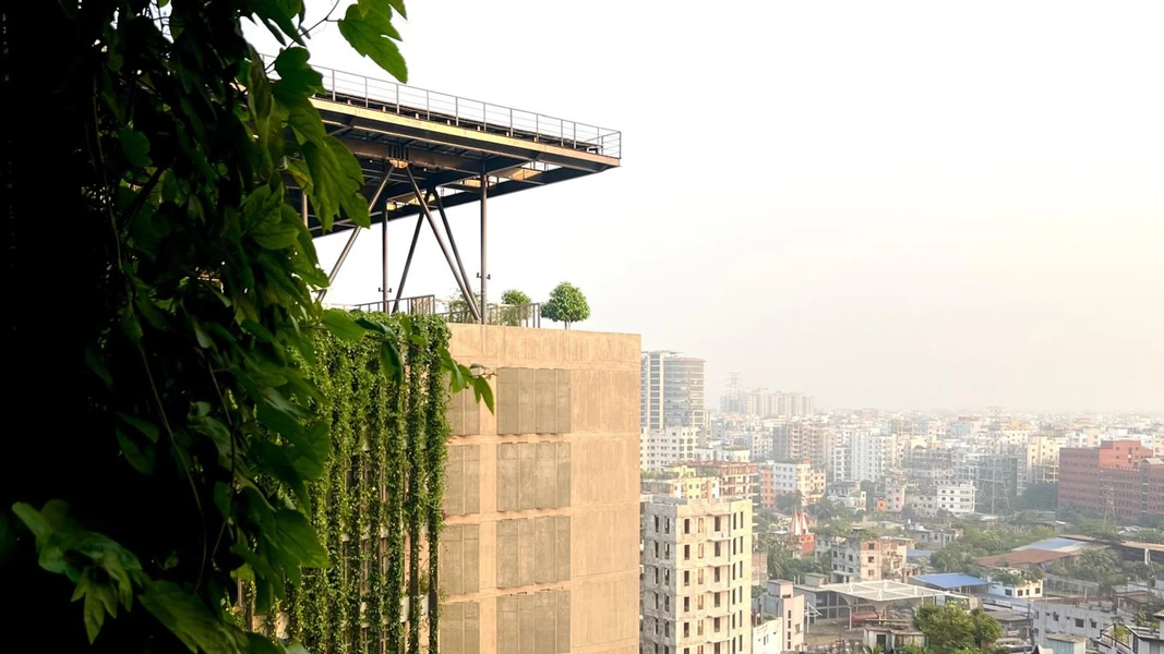 This project achieves the impossible: it adds both built and open space to the city. The site is a polluted swampland within Dhaka. Working with the client, an NGO-run university by BRAC (Building Resources Across Communities), the project team proposes a building that floats above the pond. First, the water itself is remediated into a bio-retention pond. The whole ground level of the project is opened to the public. Above, sustainable thinking permeates the design of the university building. Brise-soleil and planted facades optimize the interior climate, reducing cooling demand by 40%.
