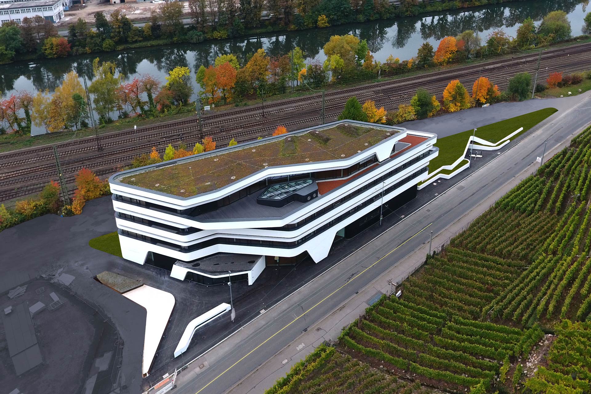 The new administration building of Südwestmetall in Esslingen has an innovative energy and comfort concept. The building's heat demand is covered by a groundwater heat pump with an open loop well system as heat source. A relatively constant groundwater temperature of approx. 12°C (53,6 °F) throughout the year and the low-temperature heating system lead to a high heat pump COP and thus to very efficient energy generation. In addition, ground water is also used for free cooling, covering the cooling demands of the active slab system, chilled ceilings and supply air conditioning.