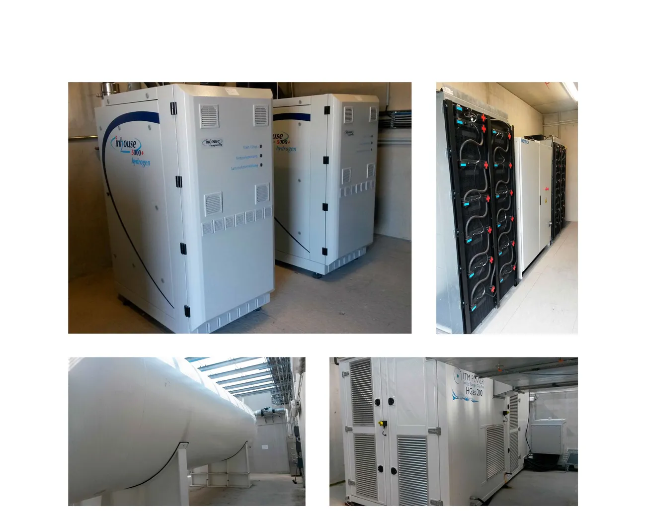 The energy concept developed for this purpose uses synergy effects between the secondary energy carriers, electricity and hydrogen. 1320 kWp Photovoltaic modules (PV) convert sunlight into renewable solar electricity across an area of more than 7,100 m² / 76,424 ft², mostly from the tops of the carports and along the noise barrier wall. Excess electrical energy is temporarily stored on-site. This is done with Li-ion accumulators and - as a special feature in this model project – as hydrogen gas (power-to-gas). Hydrogen (H2), produced from water by electrolysis, is stored in a low-pressure gas tank. H2 is a clean energy carrier: its combustion i.e. oxidation releases only water, neither greenhouse gases nor other harmful particles. As an alternative to a battery, this "green" hydrogen, produced on-site by regenerative PV electricity, is another energy storage. When needed, a specially adapted fuel cell cogeneration system silently reconverts the hydrogen into water, generating electricity and heat. At the same time, the locally produced hydrogen is available as an innovative fuel for the future-oriented H2 mobility after increasing the pressure to over 800 bar. The entire hydrogen plant and its technology was designed and delivered by Linde AG.