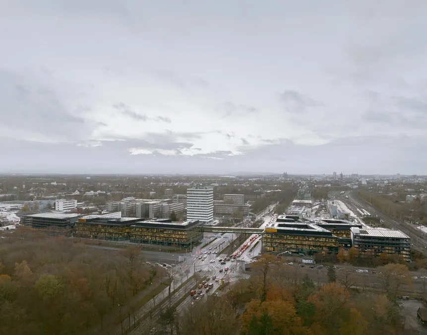 The new company headquarters of Continental consolidates all the facilities formerly spread across the city in one location, simultaneously marking the eastern approach to Hanover, the capital of Lower Saxony. The site, which is organised into a northern and a southern construction segment, encompasses a campus-like freestanding development, consisting of individual buildings connected to each other via bridges.