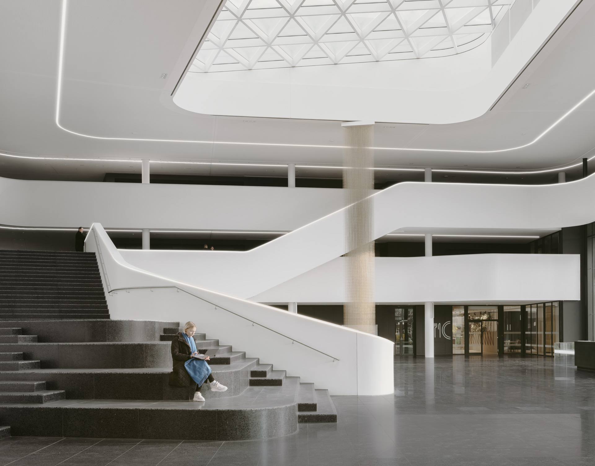 The central element of the design idea is the “Loop”, which symbolically embodies the power of communication and cooperation. As a space providing ubiquitous accessibility and interactions, the development can be experienced both from inside and from outside. It provides a wide array of spaces for meetings, conferences, cafeterias and informal workstations, and opens up scope for creativity and knowledge exchanges. The “Loop” is a dynamic spatial continuum, bringing all the staff together in a horizontal hierarchy and intermeshing the individual departments with each other.
