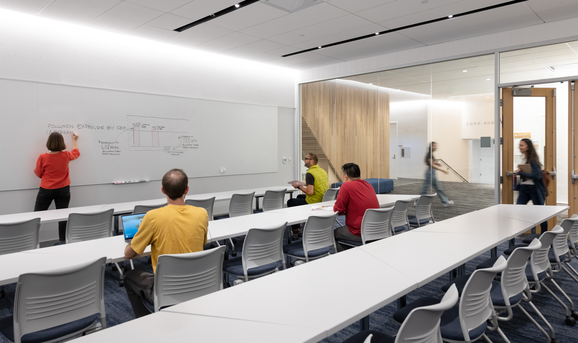 Energy is a crossroads where technology, policy, culture, geopolitics, economics, and environment come together. The location of the new home for the Arthur L. Irving Institute for Energy and Society embodies this cross-cutting nature of energy. Sited between the Tuck School of Business and the Thayer School of Engineering, and in the direct view of the Baker Library Tower, the building serves as a nexus of Dartmouth energy and society research, education, and engagement across all disciplines. The building houses the Dartmouth Sustainability Office, the Revers Center for Energy, Sustainability, and Innovation, the Dartmouth Climate Modeling and Impacts Group, and several offices and laboratories of faculty and researchers in the Thayer School of Engineering.
