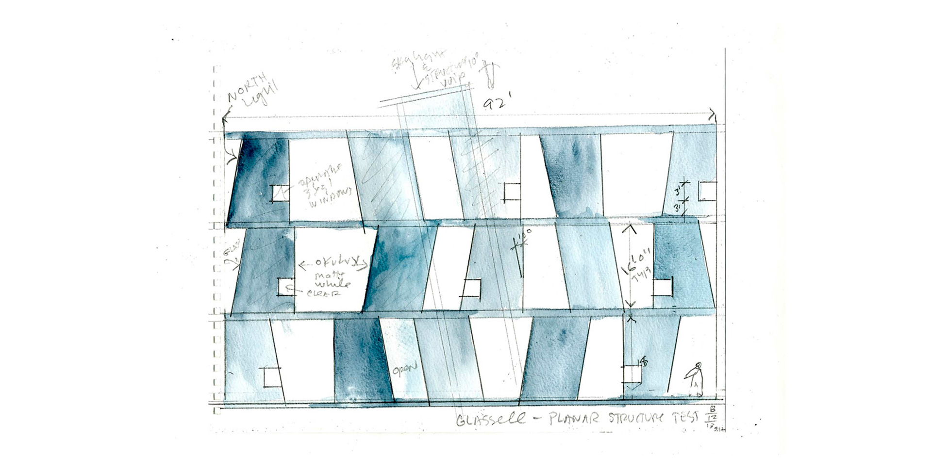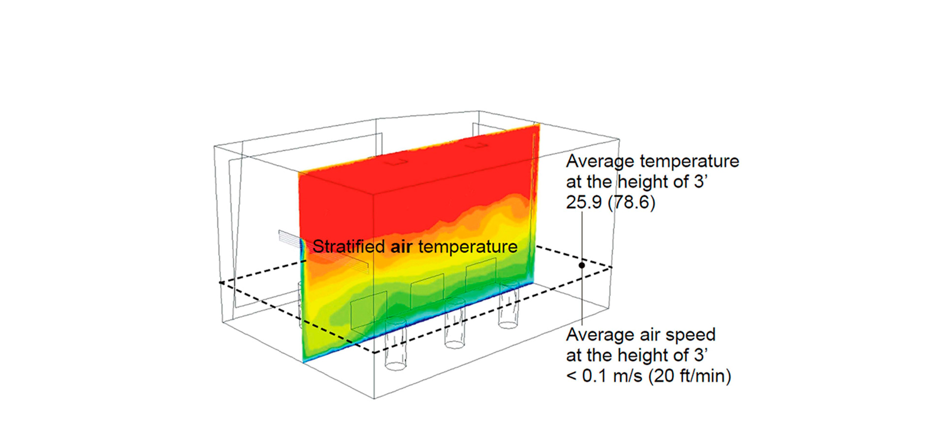Transsolar developed a studio comfort concept based on radiant floor cooling combined with neutral-temperature displacement ventilation and opportunities for natural ventilation. This concept minimizes ductwork size and noise, creating a cool, silent studio environment. Computational fluid dynamic (CFD) studies were used to verify comfort with this strategy.