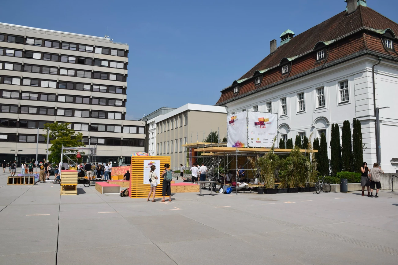 The students from the "Energy Design" seminar at the university were actively participating by creating an outdoor lounge area at GeiWi-Platz.