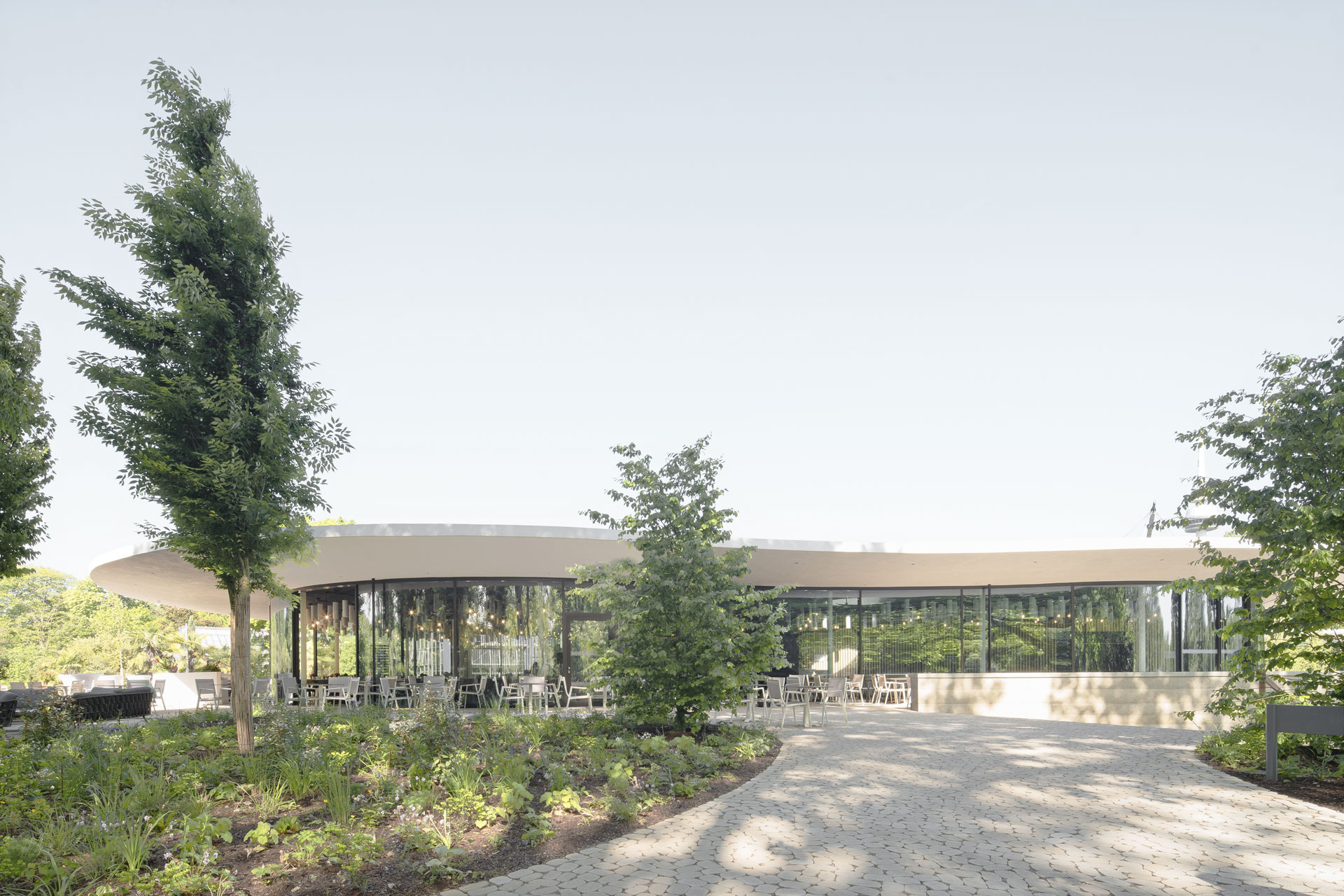 As part of the redesign of the city's largest park, several new buildings with different uses were being built. Pavilions remain single-story above ground and have green roofs. The Central building cluster is divided into the multifunctional building with restaurant and an aquarium, a walk-in aviary, and a penguin enclosure with technical and animal care spaces as well as a back-of-house building with restrooms. Construction for this phase was completed for the exposition BUGA 2023. Further buildings are planned in a second expansion phase.