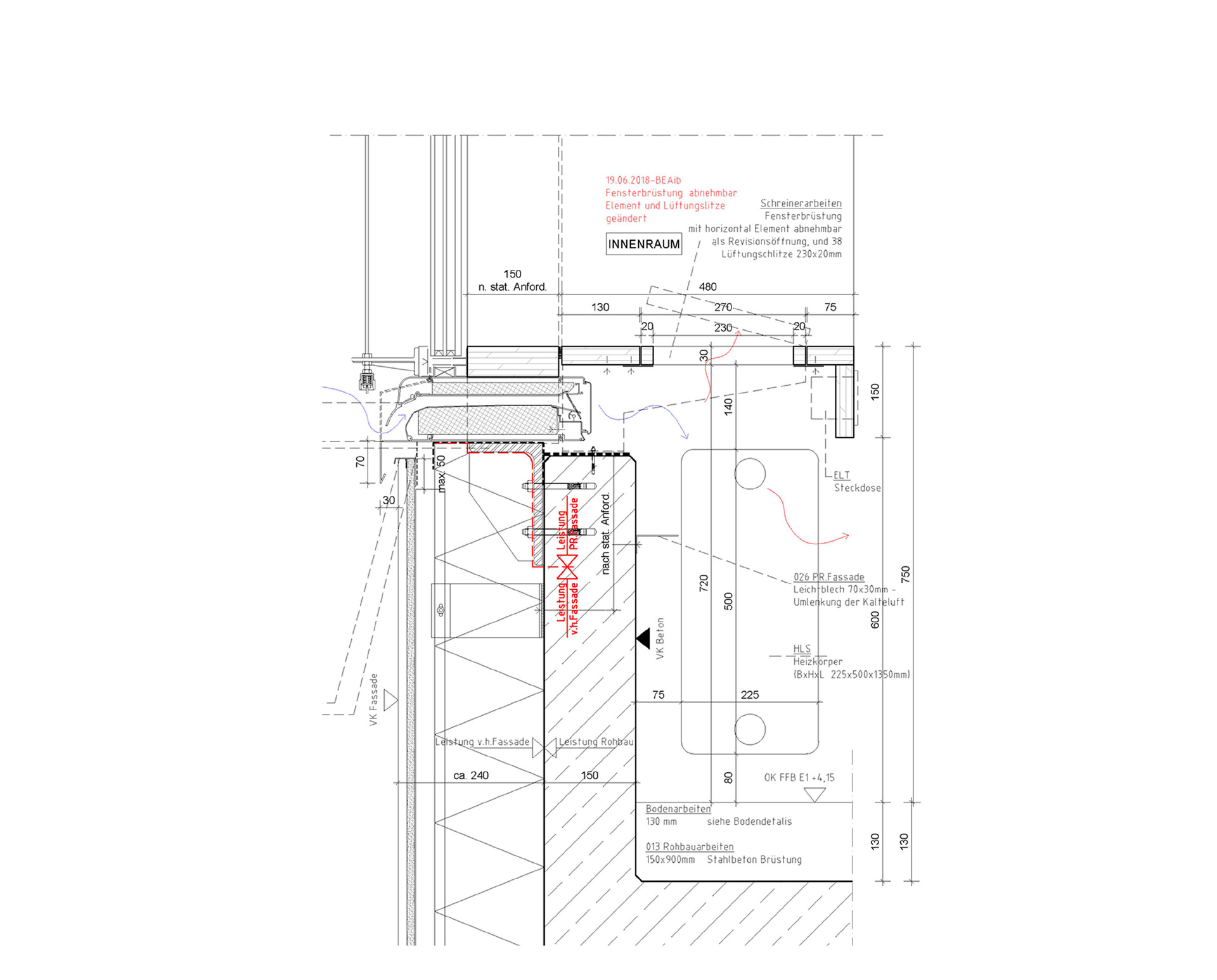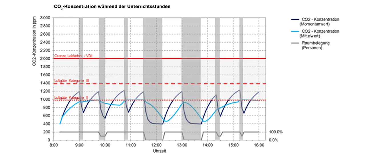 The holistic optimization of the building by Transsolar showed that active cooling of the building was not necessary. A light shelf in the upper third of the transparent façade brings daylight into the building. The sun protection, optimized by shading studies, is outside with adjustable louvers. The surrounding balcony serves as escape route as well as for maintenance / cleaning of the facade. Each learning cluster represents a fire section of its own and at the same time as a separated ventilation zone. Fresh air is introduced into the classrooms via façade-integrated inlet elements that have manually / self-controlling volumetric flow controllers, as well as reheating via heating convectors. Overflow elements to the corridor area, optimized by simulations, ensure low pressure drop, simultaneously offering high sound insulation. The exhaust air is discharged outside via the sanitary cores. The school roof is equipped with PV system with a peak
