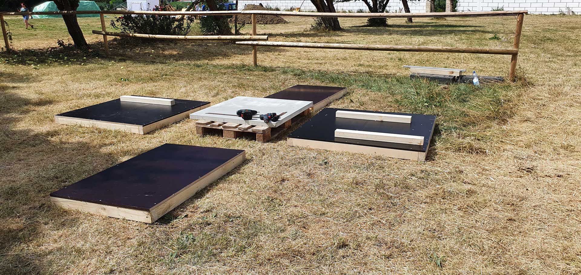 The aim of the project was to build a large wood-fired oven in which, for example, pizza could be baked for a large number of people. In order to operate the oven at the right working height, it needs a fireproof base. For this we had chosen the natural material rammed earth, also to have the opportunity to experience the material and how to handle it. For rammed earth, building clay, silt, sand and gravel are required, which are then mixed, layer by layer and without other aggregates is rammed into a formwork.