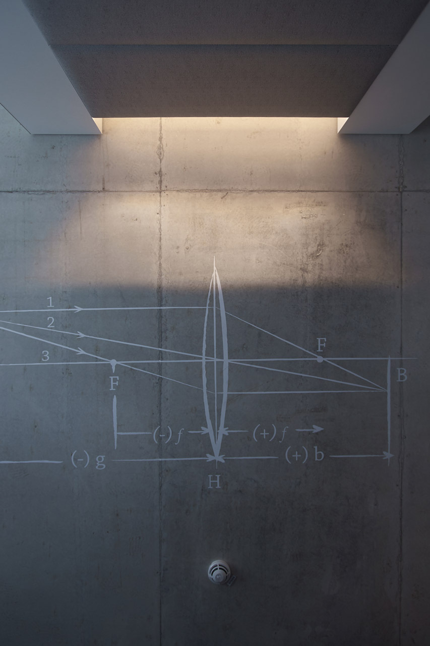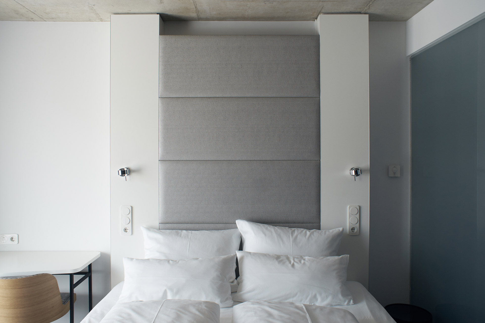 The new replacement building of the hotel, located right next to the town hall, offers 72 rooms, two suites, as well as spa, restaurant and underground parking facilities to guests from all around the world. Quality and guest comfort levels were the highest priority – realized through a simple, sleak and cost-effective concept which combines sustainable construction with low use of locally sourced energy. In coordinatiion with the design team, Transsolar developed the concept for energy, climate, and ventilation. Thermal comfort and daylight supply are guaranteed, and energy use is as low as possible, both developed via detailed simulations. Decentralized bathroom exhaust fans povide basic ventilation, drawing in fresh air via a passive downstream element in the facade. Moreover, guests may open windows for addtional ventialion. Ventilation through the windows combined with the thermal storage capacity of the exposed concrete ceilings allows for passive cooling of the hotel rooms during the transitional seasons. An external, movable sunshade regulates solar heat input and prevents overheating of the rooms. During the summer, a Gravivent System actively cools the rooms without a fan and almost silently according to the principles of gravity: warm air rises; at the top of the room it enters the system through a grid and cools down at the heat exchangers. The now cooler, heavier air falls down through a shaft and returns to the ground through air outlets in the room. Heating is provided by individually controllable convectors in the facade. They pre-heat the incoming outside air and heat the room together with the Gravivent System as this is also connected to the heating network. Utilizing the Gravivent System is unique for hotels in Germany. The energy system of the building is designed for low temperatures (95/82.4 °F) for efficient heat generation. It uses a bivalent-operated brine-to-water heat pump, which is coupled to the probes of a geothermal system. The peak heating load and domestic hot water preparation are provided by a CHP and a gas peak boiler of the neighboring town hall.