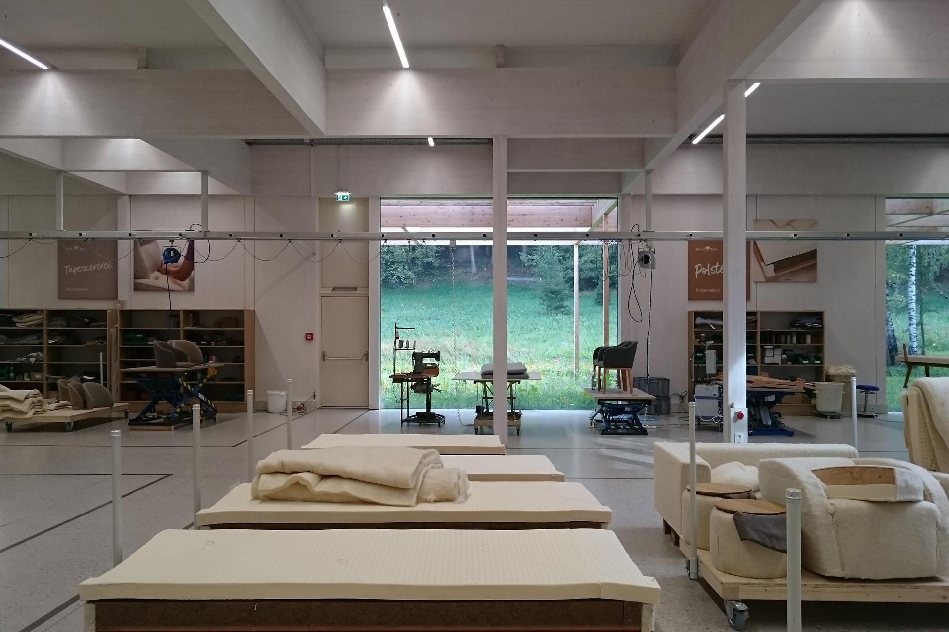 “Grüne Erde-Welt” is the name of the newly constructed visitors center of the company "Grüne Erde". The public is warmly invited to come witness the production of textiles, mattresses, upholstered furniture, and natural cosmetics, to shop, and to eat at the vegetarian organic bistro.