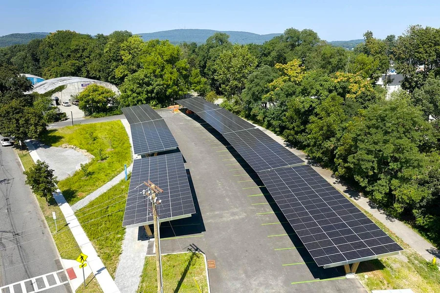 100% of the site’s annual electricity use (23 kBtu/sf) is produced on-site with photovoltaic panels located both on the roof and above surface parking. The designed operational zero carbon emissions resulted in the project receiving $2 million from a New York State Energy Research and Development Authority (NYSERDA) Carbon Neutral Community Economic Development award.