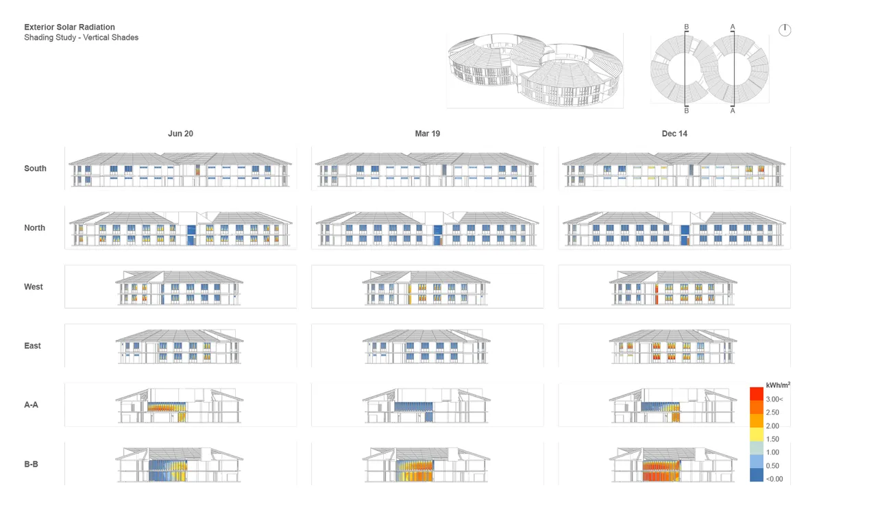 Transsolar’s role in the project was to make the entire campus as low energy and resilient as possible since the school relies on its own photovoltaic array (1.5MW peak power output) for electricity. All the buildings on campus (classrooms, laboratories, residences and animal barns) have been designed to be fully daylit so that no electric lighting is needed during the day. Additionally, the form, orientation and materials of each building have been specifically optimized through simulation so that the spaces will be comfortable with good air quality year-round using only natural ventilation.