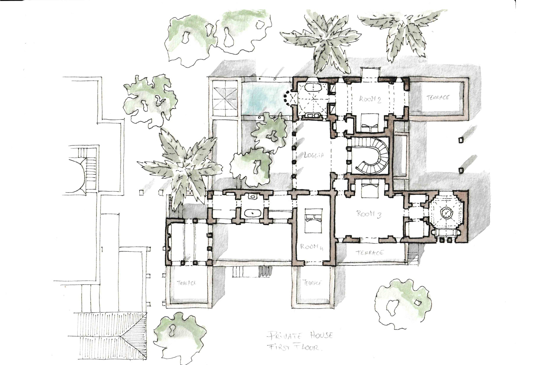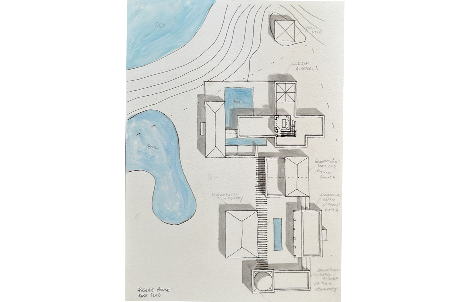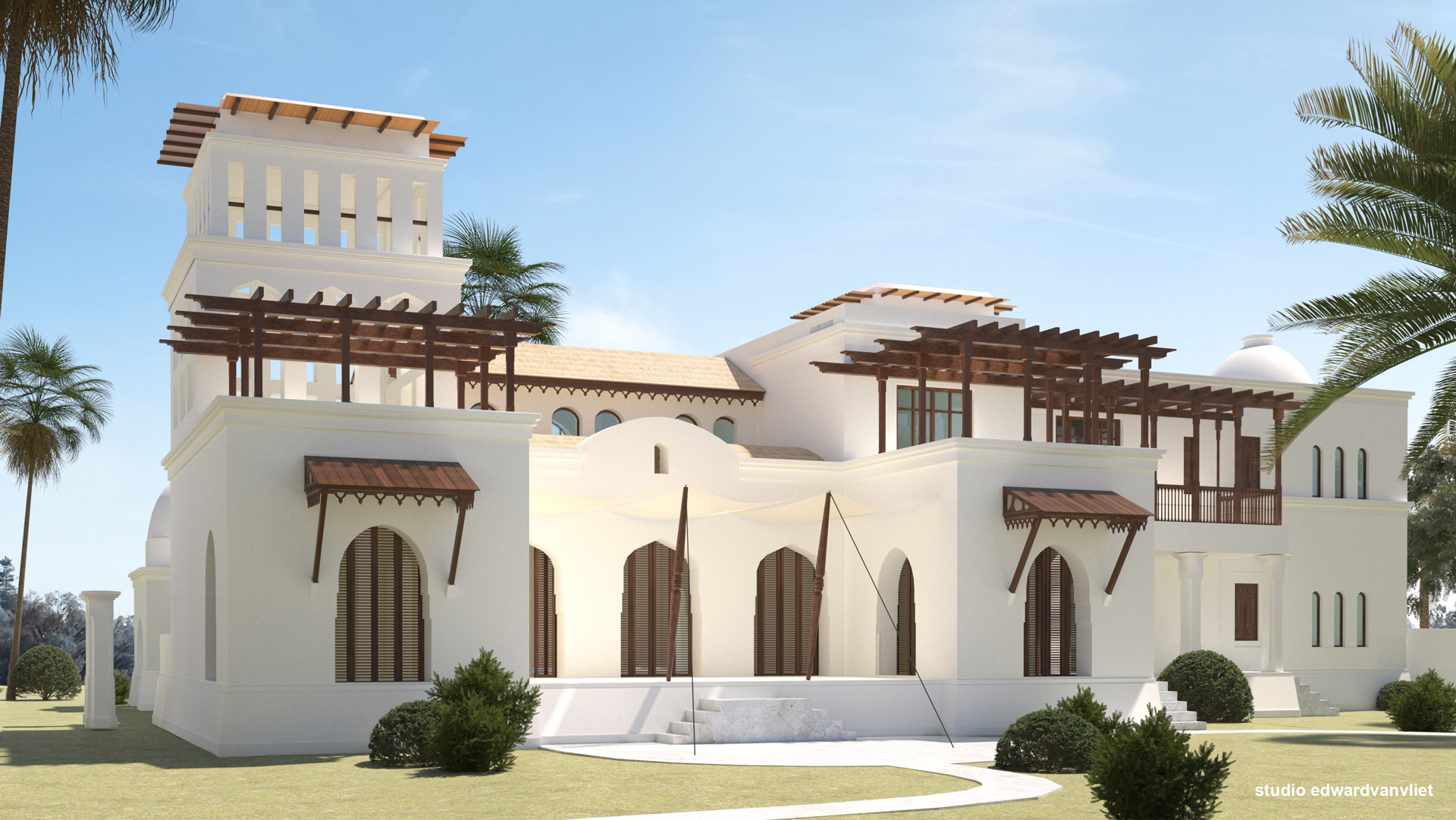 Private residences for the client and his family; for the visitors - Moroccan-style individual houses overlooking the sea, a large sloped-roofed building with several rooms, called the ‘Team Village’, and a restaurant.