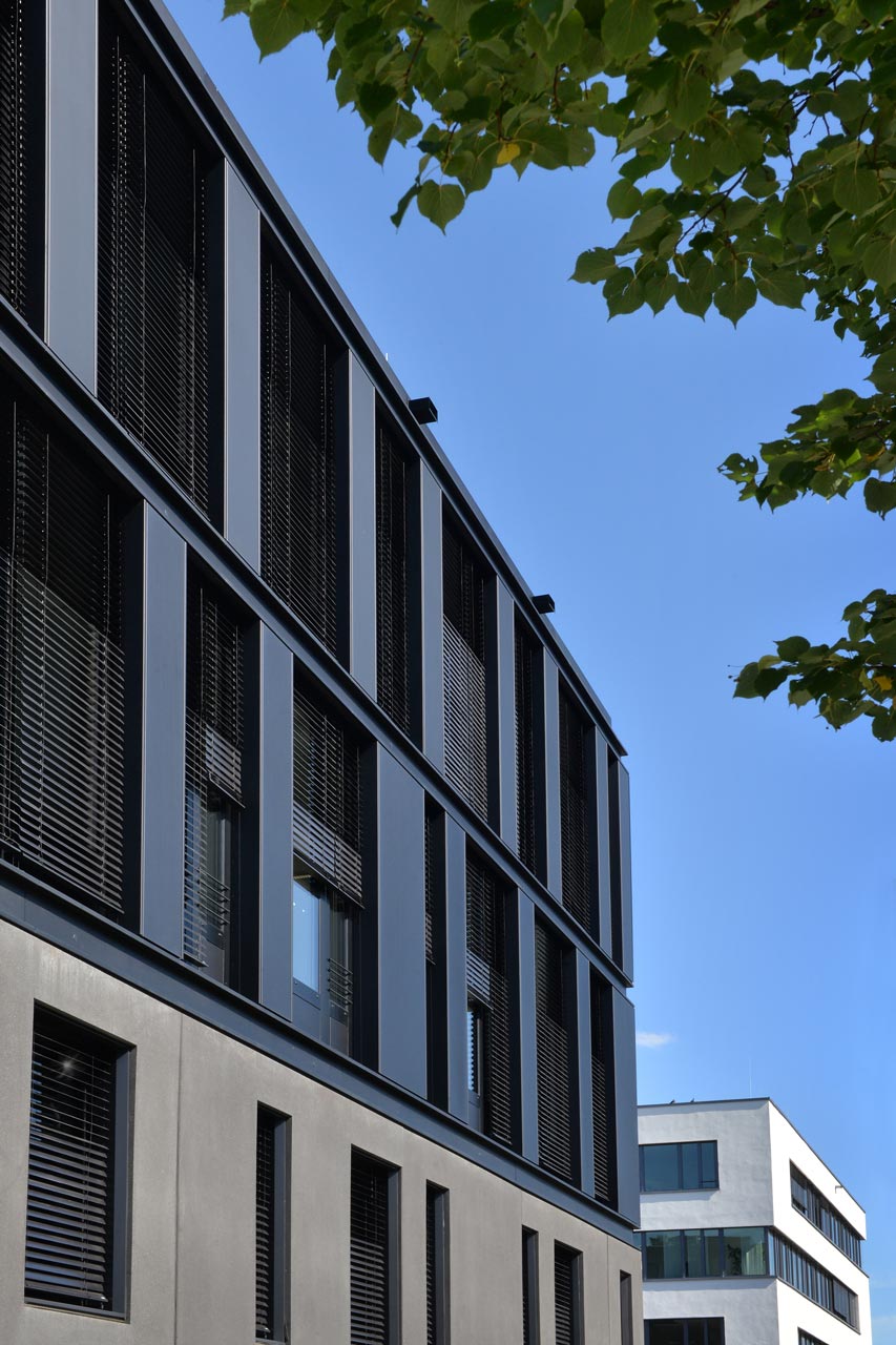 ZSW's new institute in Stuttgart's Engineering Park (STEP) is showing what is being researched here with its shell, as it is largely equipped with specially developed thin-film modules: The façade and its integrated PV elements with an area of around 170 m² / 1,800 sf² and a peak output of around 27 kW are black and form a homogeneous glass surface. The 230 modules integrated horizontally on the partially greened roof have an output of approx. 20 kW. A building equipped with vertically mounted modules on the façade can benefit from a low sun during the morning and evening hours as well as during winter. The façade is also designed so that modules can be easily replaced individually for test purposes.