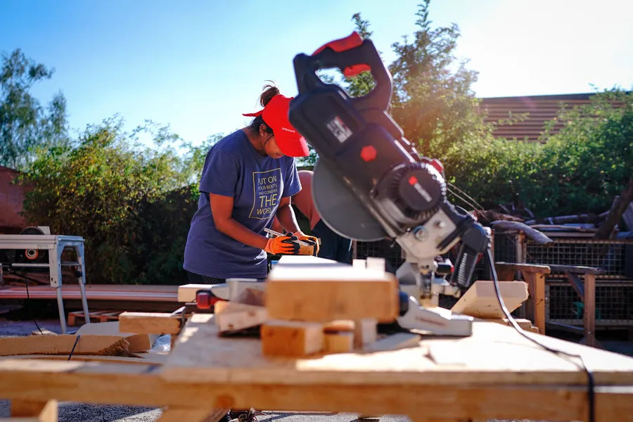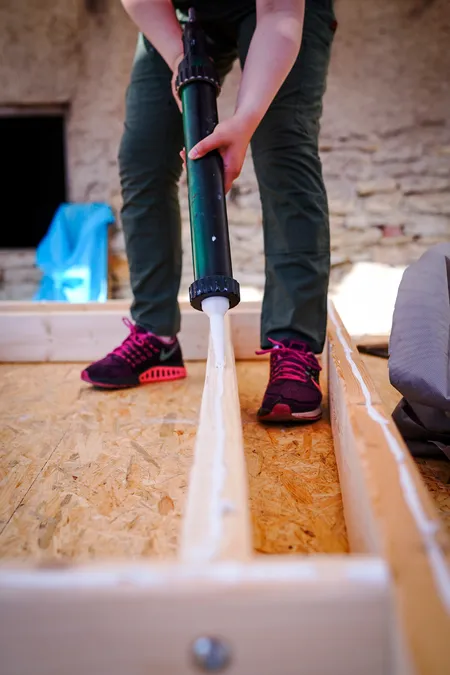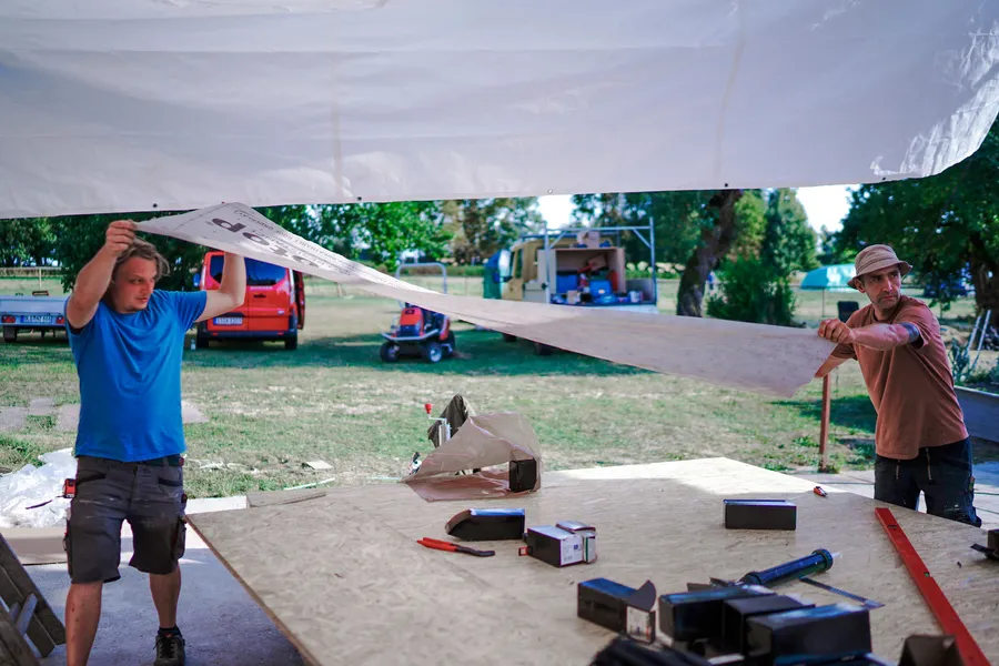 The way in which the construction was devised from the beginning was to build the frames and supporting structure of the individual walls on the ground and then lift and fix them in place on the base. This modular construction method facilitated that several teams of people could work on different parts of the Tiny House simultaneously.