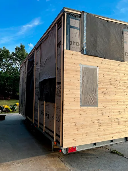 The overall dimensions of the Tiny House were defined based on the idea of building it on top of a trailer. Among the many advantages of using a pre-built trailer are the mobility, since the Tiny House can be hitched to a truck and moved to a new spot whenever the mood strikes. In addition, this solution does not need a concrete foundation, reducing its carbon footprint. The Tiny House has great dismantling and reuse flexibility and low construction costs.