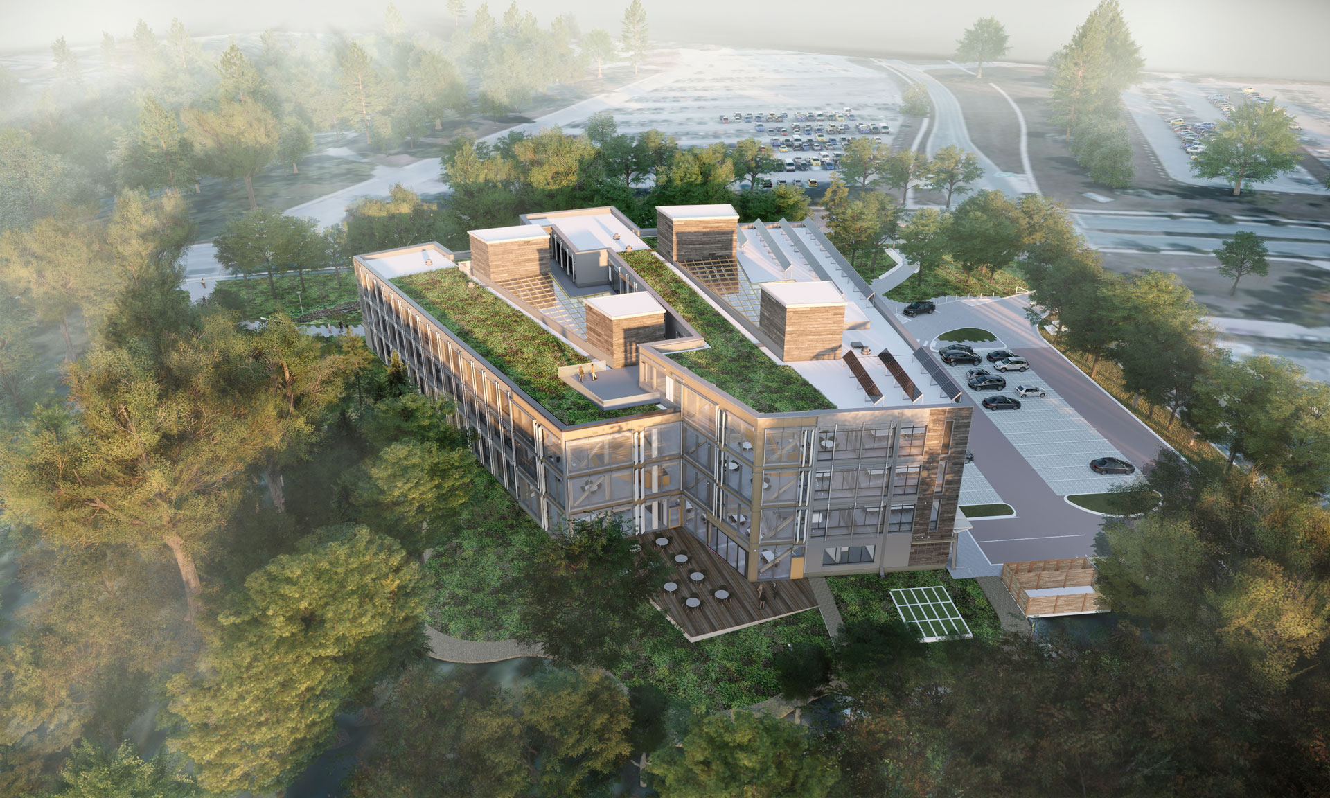This was the first collaboration in North America between Bucholz Mcevoy Architects and Transsolar, building on the well-established working relationship in Europe. The Toronto and Region Conservation Authority (TRCA) protects the metropolitan region's watersheds by regulating development in environmentally sensitive areas, environmental monitoring and community engagement. The new building offers nearly 10,000 square feet of flexible office space. It is located on the same site as the old TRCA building, near a ravine that the agency is trying to protect and represents the TRCA's commitment to green infrastructure.