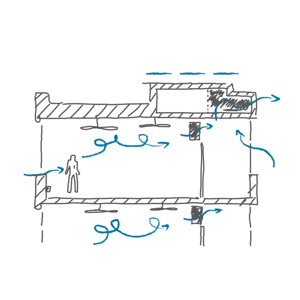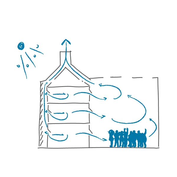 more >We support design teams in the development of ventilation concepts with a focus on natural ventilation. To this end, we define the required air paths together with suitable opening elements and free cross-sectional areas, size stacks or fans for assisted driving forces, and develop the necessary control strategies.