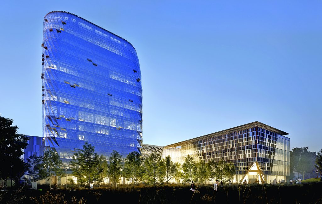 Bis 2019 soll der MacKimmie Tower dann um zwei Stockwerke erweitert wieder in Betrieb gehen. Die neue Doppelfassade mit hochleistungsfähigen Gläsern sorgt im Zusammenspiel mit Lüftungsklappen und Verschattung für Behaglichkeit im Gebäude und reduziert zugleich die Notwendigkeit mechanischer Lüftung. Die natürliche Durchlüftung der Doppelfassade wird aktiv geregelt, so dass um das Gebäude herum ein Wärmepuffer und Klimaregulator entsteht, der entscheidend dazu beiträgt, die ambitionierten Zielsetzungen hinsichtlich der Gebäudeperformance zu erfüllen. Dachintegrierte Photovoltaikanlagen erzeugen erneuerbaren Strom zur Nutzung in den Gebäuden. (Rendering: DIALOG)