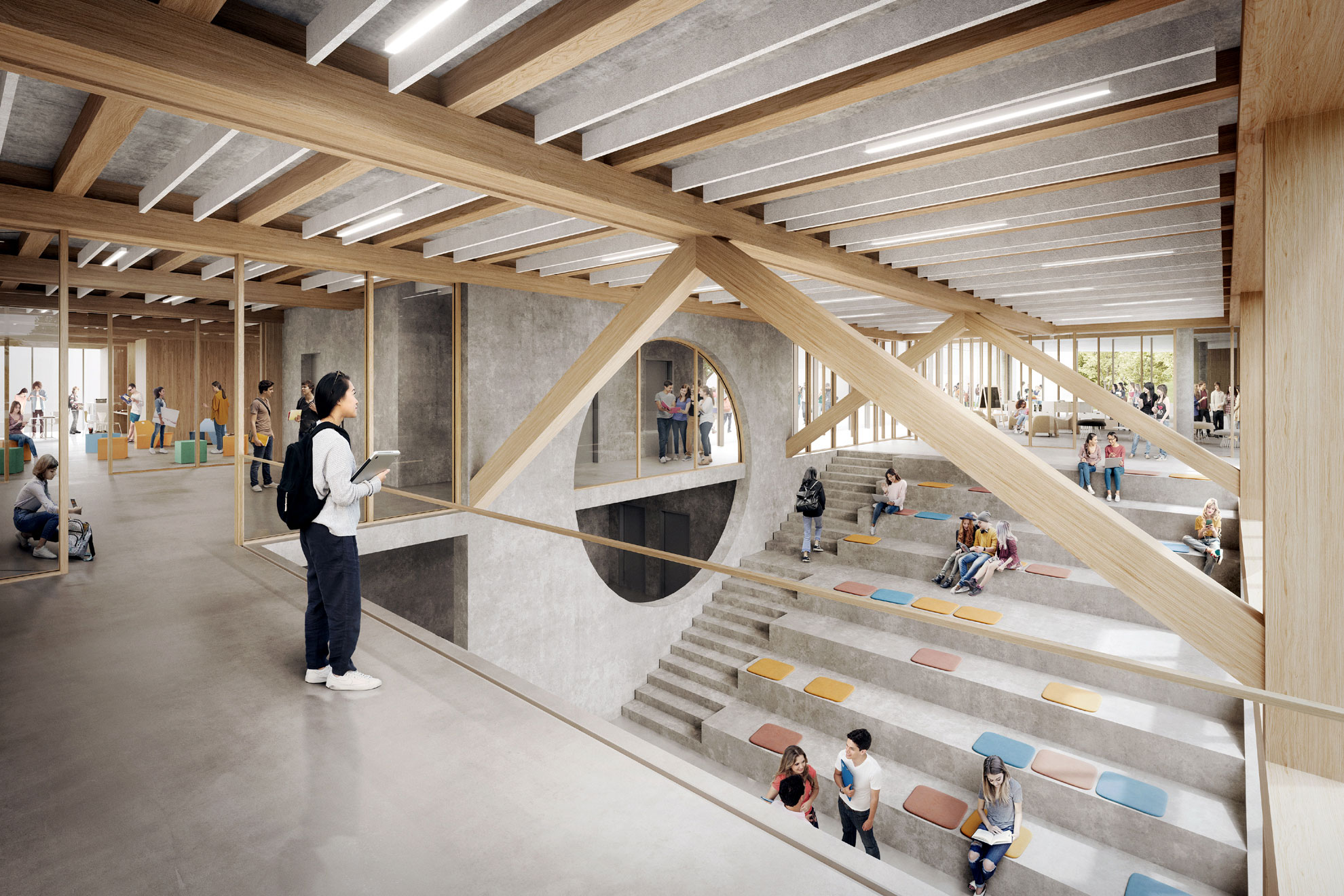 Bei dem Bauvorhaben der Karl-Kessler-Schule (KKS) geht es um ein Schulhausensemble im Ortsteil Wasseralfingen mit Ersatzneubau für die alte Talschule und die Generalsanierung des Realschulgebäudes. Neu- und Bestandsbau erhalten einen gemeinsamen Eingangsbereich mit Foyer.
