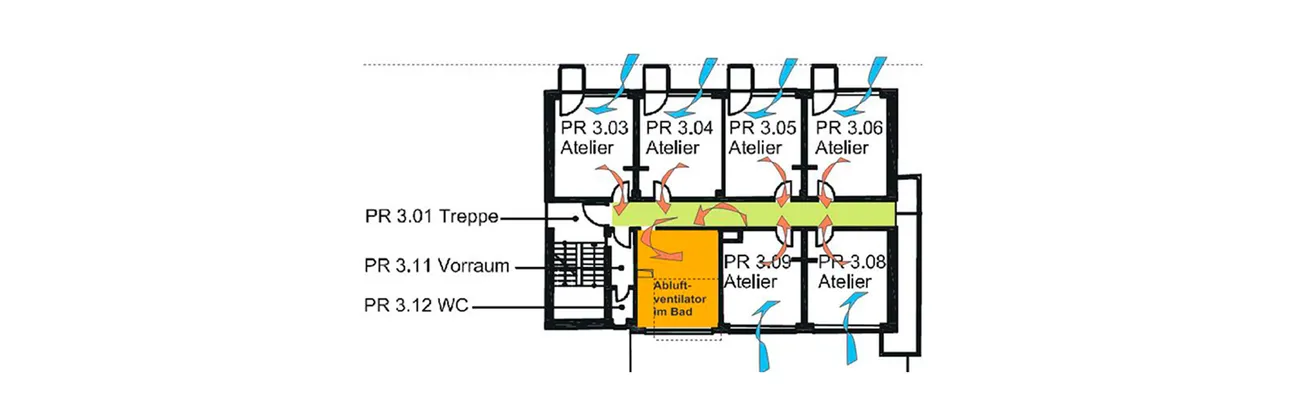 Die die einstige Kunst-, Design- und Architekturschule Bauhaus Dessau, geplant vom Architekten Walter Gropius, stammt aus den 1920er Jahren und ist Weltkulturerbe. Ohne Wärmedämmung und einfach verglast verbrauchte der historische Komplex zunehmend mehr Energie mit steigenden Kosten bei mangelndem Komfort und bauphysikalischen Problemen auf Grund veränderter Nutzung. Die Stiftung Bauhaus Dessau beauftragte Transsolar, ein Klimakonzept zu entwickeln, das eine denkmalgerechte Sanierung ermöglicht und den CO₂ Ausstoß deutlich senkt. Besonders wichtig war es, Fassade und Wandflächen vor Tauwasser zu schützen und das Erscheinungsbild dabei zu bewahren. Transsolar hat Gebäude und Verbrauch analysiert und nach Vereinbarung der energetischen Ziele vielfältige Sanierungsvorschläge eingebracht. Iterativ abgeklärt mit dem Denkmalamt entstand daraus der Katalog von Sanierungsmaßnahmen, mit Einzelbewertung zu Einsparpotential, Investitionskosten sowie Denkmal- und Nutzerakzeptanz. Kraft-Wärme-Kopplung versorgt nun das Gebäude mit Fernwärme. Neue Pumpen, ferngesteuerte Heizkörperregler und gedämmte Leitungen im Gebäude senken den Energieverbrauch, ohne in die Architektur einzugreifen. Eine neue Nutzungsverteilung entsprechend der erzielbaren Dämmstandards und Verschattungsmöglichkeiten wurde erarbeitet. Für die Gebäudehülle wurden mit den Architekten und einer Fassadenfirma spezielle thermisch getrennte Fassadenprofile entwickelt, die den Originalprofilen sehr nahe kommen. Die Einfachverglasung wurde in großen Teilen des Gebäudes duch eine Isolierverglasung ersetzt. Diese hat minimalen Scheibenabstand und Kryptongasfüllung jedoch keine low-e Beschichtung, um das Erscheinungsbild denkmalgerecht zu bewahren. Historische Fassadenprofile, die nicht thermisch getrennt ausgeführt werden konnten, temperiert eine elektrischen Begleitheizung und verhindert Kondensatausfall und Korrosion. Die Fassade verliert 50% weniger Wärme und sorgt für mehr Behaglichkeit durch weniger kalte Flächen. Eine mit der Denkmalpflege abgestimmte PV-Anlage sorgt für elektrische Energie. Ihre geschlossene Fläche aus rahmenlosen flachen Modulen auf dem Dach ist von unten fast unsichtbar und erwirtschaftet ca. 16.400 € Einspeisevergütung pro Jahr. Das Bauhaus spart mit nur einem Teil der vorgeschlagenen Maßnahmen mehr als ein Drittel an Heizenergie ein bei fast 50% weniger CO₂ Ausstoß und kann nun viele Räume ganzjährig nutzen.