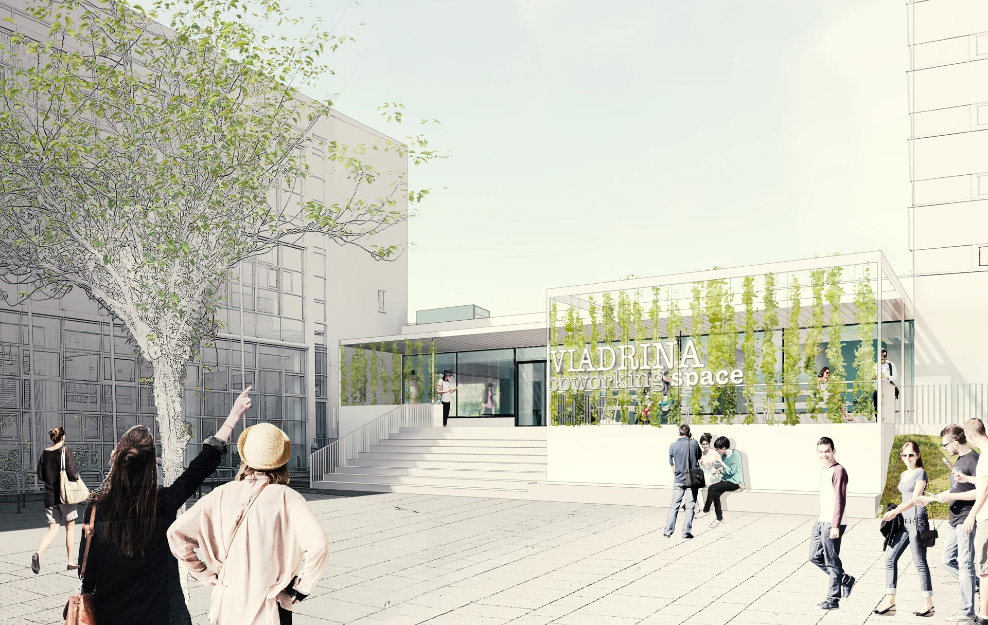 Mit dem jetzt anstehenden Umbau zu einem Coworking-Space wird Studierenden, Forschenden und Uni-externen Akteuren ein Raum für Kommunikation und Kollaboration gegeben. Damit lässt sich die neue Gebäudefunktion mit den drei Stichworten „Begegnen“, „Lernen“ und „Gründen“ zusammenfassen.