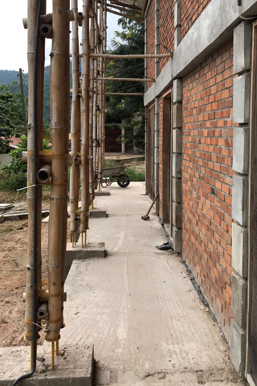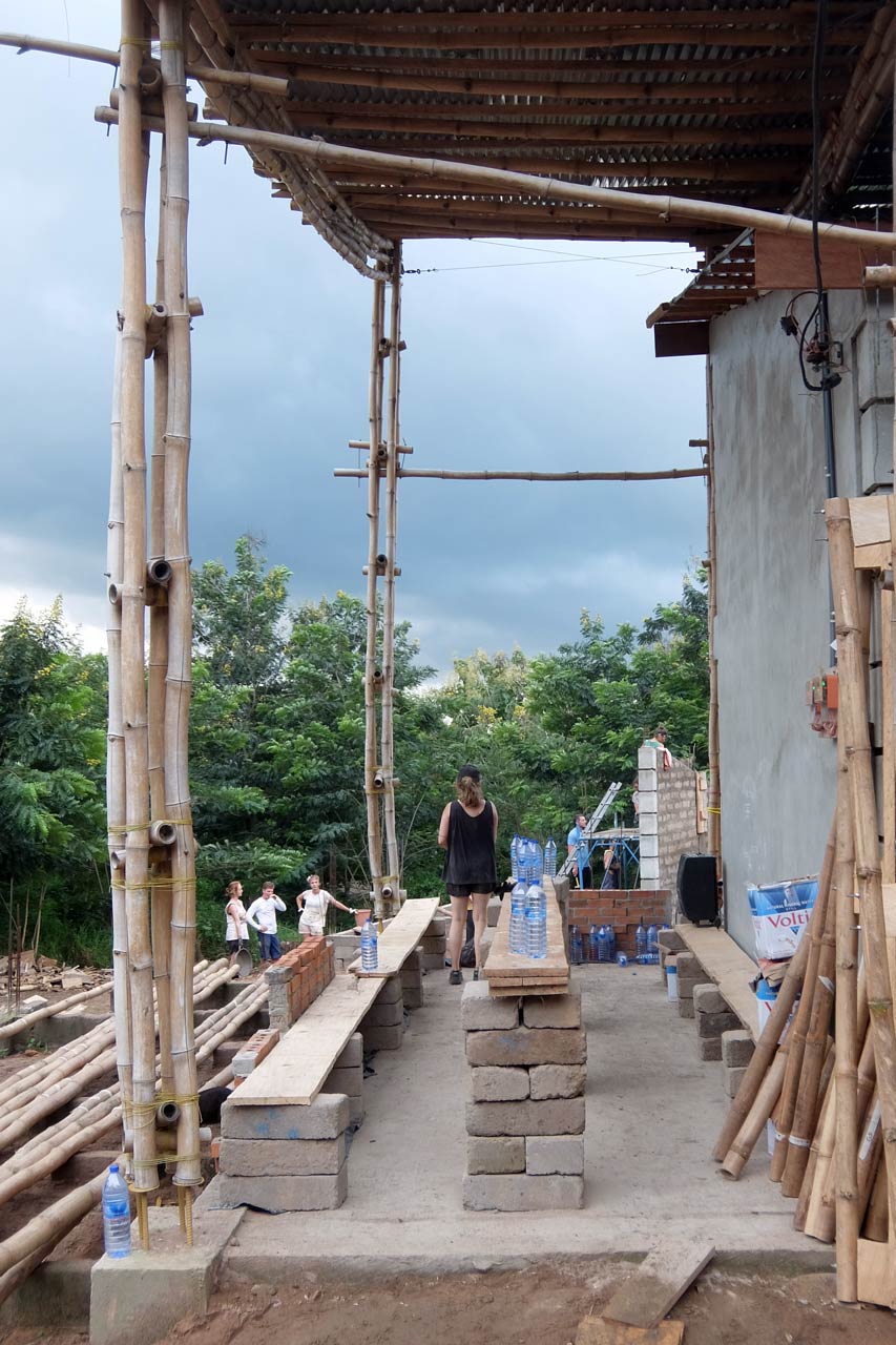 Transsolar ist erfahren mit passiven Strategien, die auch bei warm-feuchten Klima wie dort in Westafrika dauerhaft funktionieren und für mehr Komfort sorgen und gibt das Wissen gerne weiter. Luftbewegung zu ermöglichen ist eine geeignete Strategie, die Schwüle und Hitze lindert. Daher sind die Gebäude möglichst zweigeschossig gebaut und mit großzügigen Lüftungsöffnungen versehen. Wind kann so durch die Gebäude strömen und nicht zuletzt nachts die «thermischen Massen« entwärmen, hier sind es Mudbricks aus Eigenproduktion, Ziegel einer lokalen Firma und etwas Beton. Die Hauptwindrichtung in Havé ist Nord-Süd. Daher war die Anordnung der Gebäude nach Osten und Westen wichtig, mit einem Innenhof, den der Wind durchlüftet.