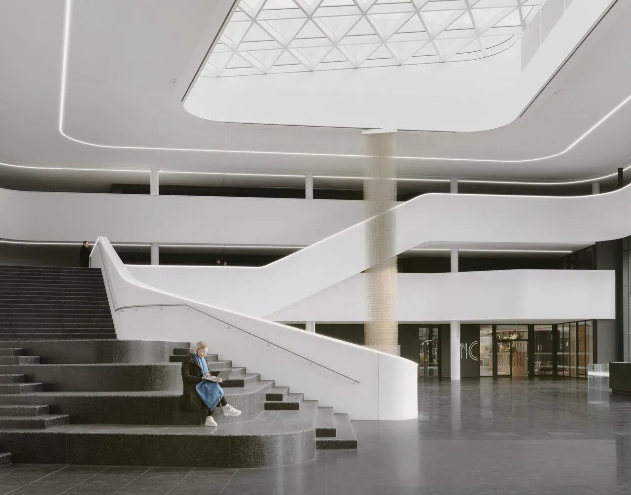 Der „Loop“ wird zum zentralen Bestandteil der Entwurfsidee und steht sinnbildlich für Kommunikation und Kooperation. Als allgegenwärtiger Erschließungs- und Begegnungsraum ist er sowohl nach innen als auch nach außen erlebbar. Er bietet eine Vielfalt an Räumlichkeiten für Meeting, Konferenz, Cafeteria und informelle Arbeitsplätze und öffnet Raum für Kreativität und Wissensaustausch. Der „Loop“ ist ein dynamisches Raumkontinuum, das alle Mitarbeiter in einer horizontalen Hierarchie zusammenbringt und die einzelnen Abteilungen miteinander vernetzt.