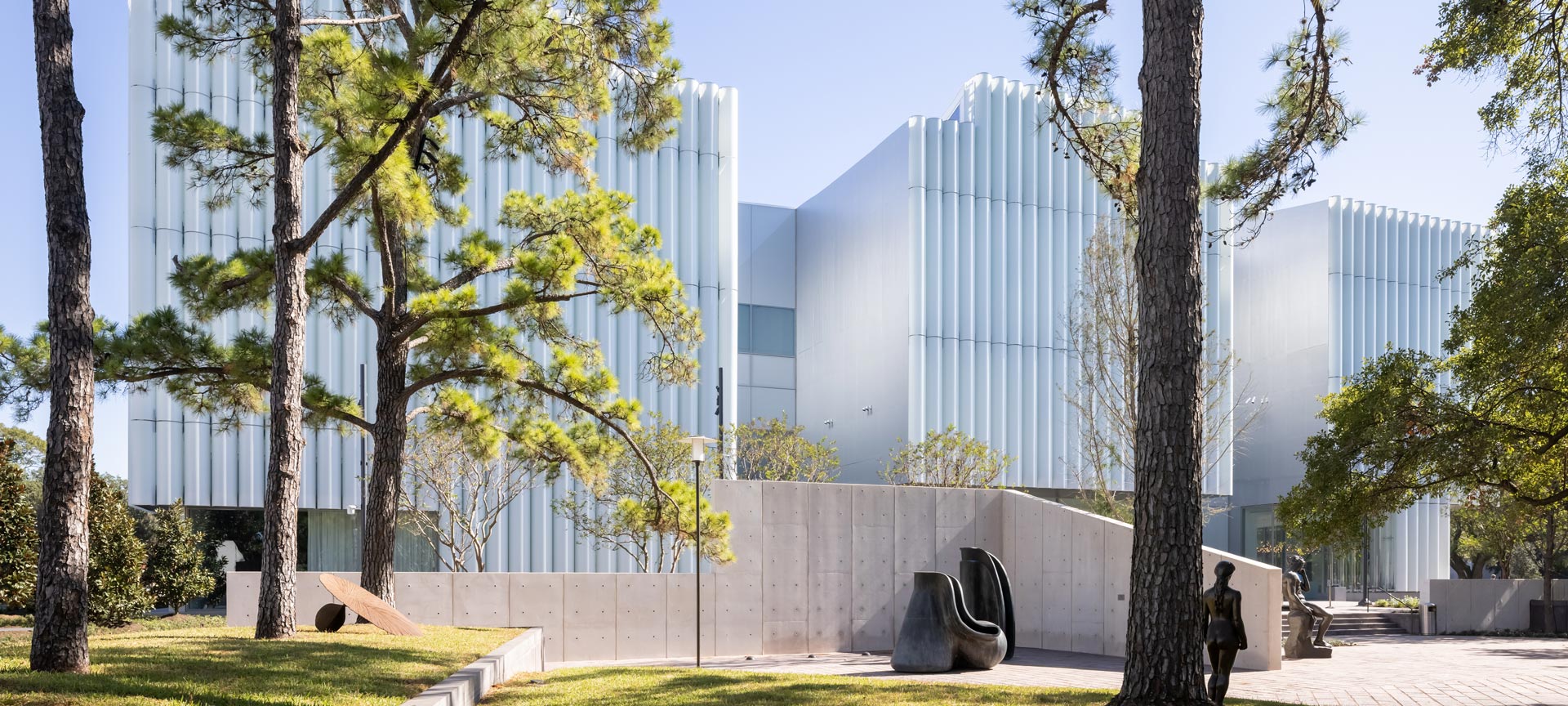 Nach den Worten von Steven Holl Architects "besteht die architektonische Vision für den Erweiterungsbau von SHA aus einer horizontalen Kubatur aus lichtdurchlässigem Glas. Die gebogenen Glaselemente, die den größten Teil der Fassade umhüllen, haben eine weiche, alabasterartige Textur. Ein leuchtendes Vordach bedeckt das neue Gebäude. Konkave Kurven, die die Dachgeometrie nach unten drücken, lassen das richtige Maß an natürlichem Licht einfallen, perfekt für von oben beleuchteten Galerien." Dies steht in starkem Kontrast mit den älteren Galeriengebäuden des MFAH von Mies van der Rohe und Raphael Moneo, wovon das eine auf schwere Vorhänge setzt, um übermäßiges Licht auszusperren, das andere auf Glaslaternen auf dem Dach als einzige Tageslichtquelle.