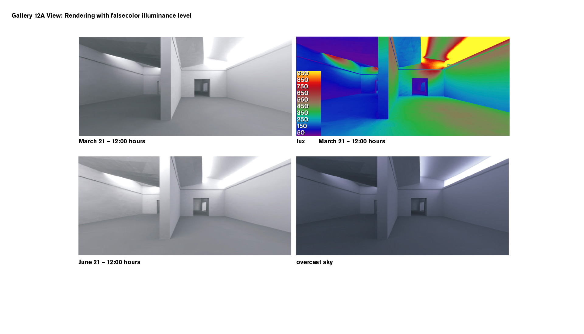Transsolar half auch bei der Gestaltung des architektonischen Designs, um optimale Tageslichtquantität, -qualität und -verteilung zu gewährleisten und um ein dynamisches Raumerlebnis in Einklang mit den Notwendigkeiten zum Erhalt von Kunstwerken und den Anforderungen zu ihrer Ausstellung in den Galerieräumen zu bringen. Die Ausrichtung, sowie die täglichen und jahreszeitlichen Variationen durch Sonnenstand und Bewölkung wurden bei der Bewertung verschiedener Geometrien und Materialien berücksichtigt, um das Tageslichtdesign fein abzustimmen.