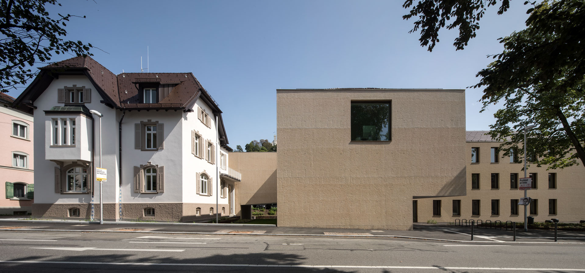 Bürgerfreundlichkeit als auch Wirtschaftlichkeit waren Motivation der Stadt Ravensburg, verschiedene Verwaltungsstandorte in einer Liegenschaft zusammenzulegen. In diesem Kontext war es die Aufgabenstellung, eine denkmalgeschützte Altbauvilla in der Seestraße 7 zu sanieren und mit einem L-förmigen Neubau zu ergänzen. Mit der Fertigstellung stehen rund 80 moderne Arbeitsplätze für den intensiven Bürgerkontakt zur Verfügung. Der dreigeschossige Neubau mit kerngedämmter, massiver Lochfassade ist über einen Verbindungsbau in den beiden Obergeschossen mit dem Bestandsgebäude verbunden. Die Nutzflächen sind größtenteils in Einzel- oder Doppelbüros aufgeteilt. Weitere charakteristische Bereiche sind ein Sitzungssaal für bis zu 34 Personen, kleinere Besprechungsräume sowie zwei Kombizonen in den Dachgeschossen beider Neubauspangen. Im beheizten Untergeschoss befinden sich Zentralarchive, Lagerflächen, Technik- bzw. Serverräume.
