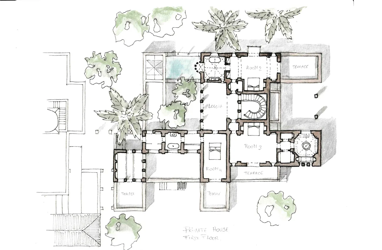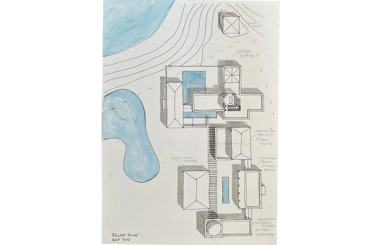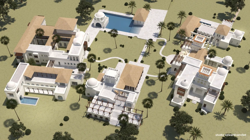 Der Bebauungsplan sieht mehrere Gebäude vor: Privatwohnungen für den Bauherrn und seine Familie; Einzelhäuser im marokkanischen Stil und mit Meeresblick für die Gäste, ein großes Gebäude mit mehreren Räumen und Schrägdach, das so genannte "Team Village", sowie ein Restaurant. In der Nebensaison wird mit etwa 70 Gästen gerechnet, in der Hochsaison können es bis zu 90 sein, zuzüglich Personal.