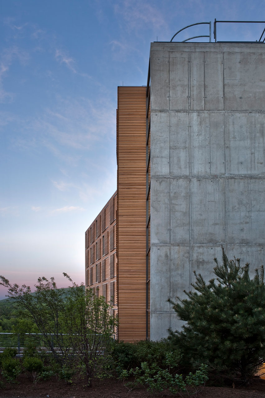 Ein ehemaliges Kloster wurde für das das neue Zentrum für Yoga und Gesundheit erweitert. Dieser Anbau verbindet das bestehende Erholungszentrum mit einem neuen Wohnkomplex. Durch die Nutzung von verschiebbaren externen Sonnenschutzelementen, einer Aktivierung der Betondecken zum Heizen und Kühlen, effektive Tageslichtnutzung sowie natürliche Belüftung etabliert sich das Kripalu Wohnhaus zu einem Eckpfeiler der Nachhaltigkeit. Ein verglaster, nach Süden ausgerichteter Korridor ermöglicht den Yogi auch bei kalten Wetterbedingungen einen warmen und hellen Durchgang zum Erholungszentrum. Die 80 Zimmer des Wohnhauses wurden an einem ökonomisch optimierten Grundriss ausgerichtet, wodurch das Gebäude in die Höhe anstatt in die Breite wächst.
