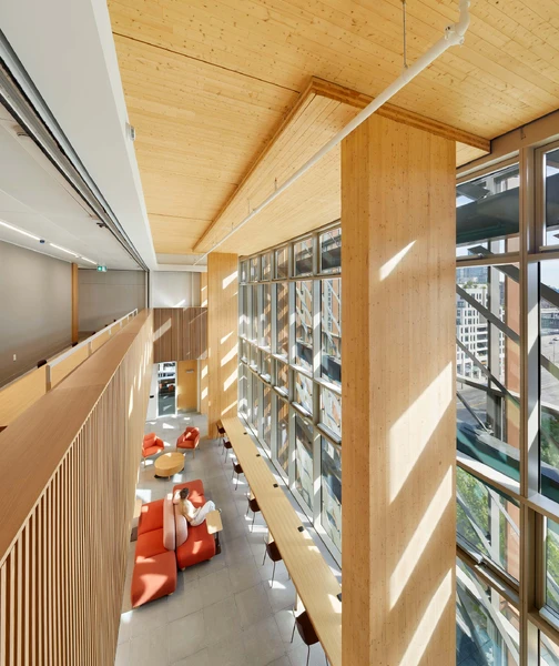 Limberlost Place nutzt einen wegweisenden Ansatz für die Massivholzkonstruktion und die vorgefertigte Fassade, der Zeit und Material spart, eine hohe Qualitätskontrolle gewährleistet und all dies auf einer kompakten, effizienten Grundfläche, die eine kohlenstoffarme Zukunft fördert.