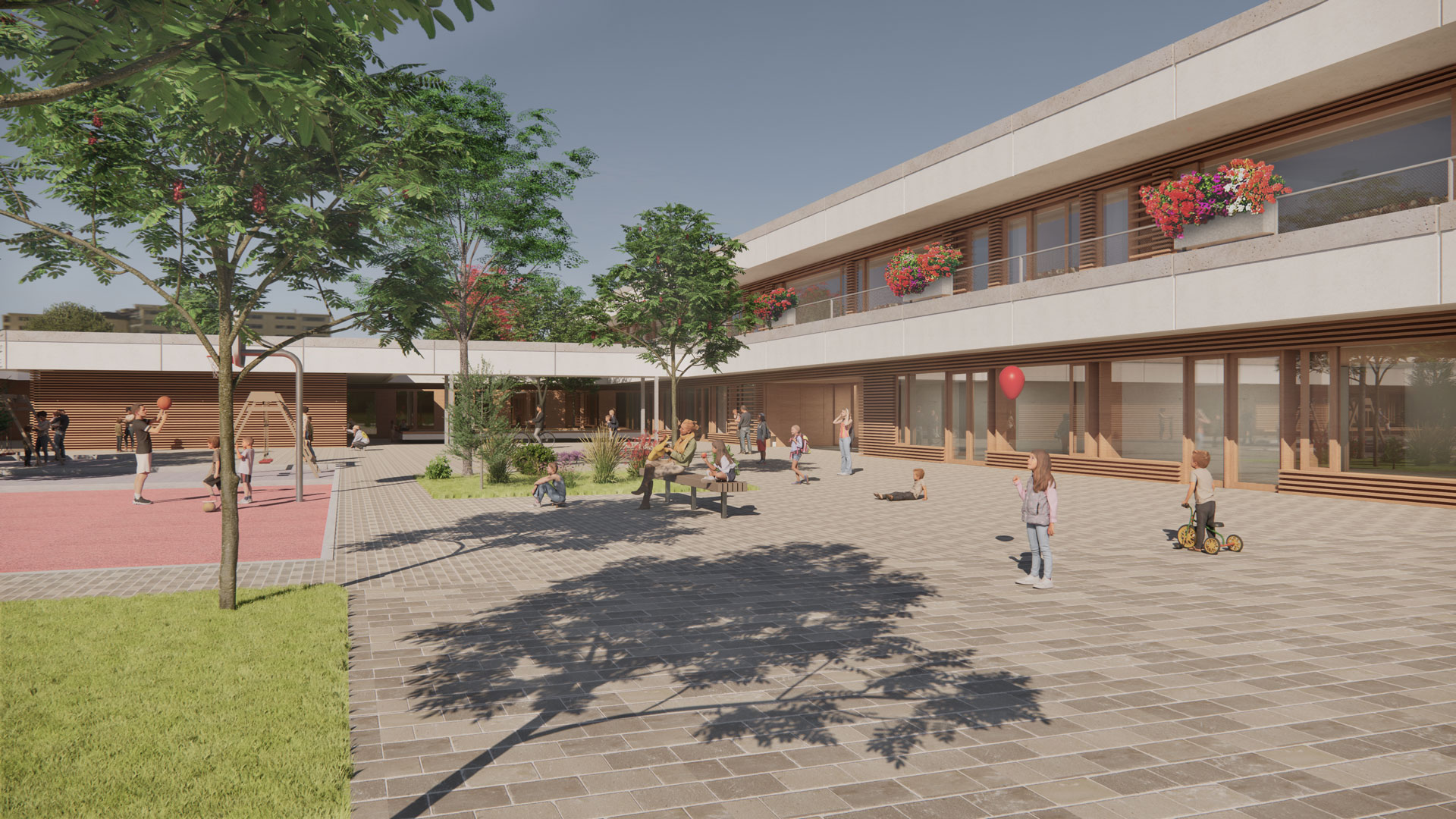 Die Stadt Traunreut plant eine dreizügige Grundschule mit Räumen für die Ganztagsbetreuung und einer kleinen Sporthalle.