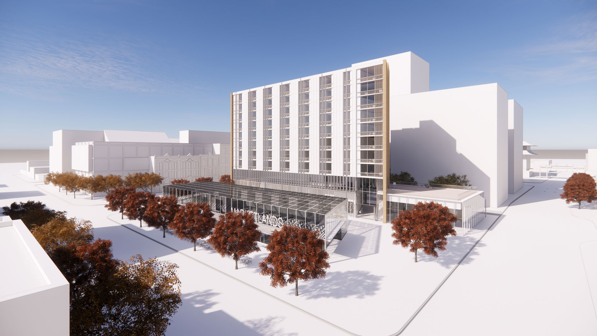 Die Market Lands befinden sich im Herzen des Exchange District von Winnipeg, zentral gelegen zwischen vielen Gebäuden von historischer oder kultureller Bedeutung. In den letzten fünfzig Jahren war auf dem Gelände die örtliche Polizei zu Hause und es gab ein Parkhaus. Zur Zeit der Stadtgründung in den frühen 1800er Jahren war dort ein öffentlicher Markt und bildete ein Zentrum für Handel und Gewerbe. Im Rahmen der Sanierung dieses Gebiets arbeitete Transsolar gemeinsam mit Daoust Lestage an einem 10-geschossigen Sozialwohnungsprojekt. Ziel war ein Gebäude, das einkommensschwächeren Familien Lebensqualität bieten, dabei aber kostengünstig bleiben und einen geringen CO2 Ausstoß verursachen sollte.