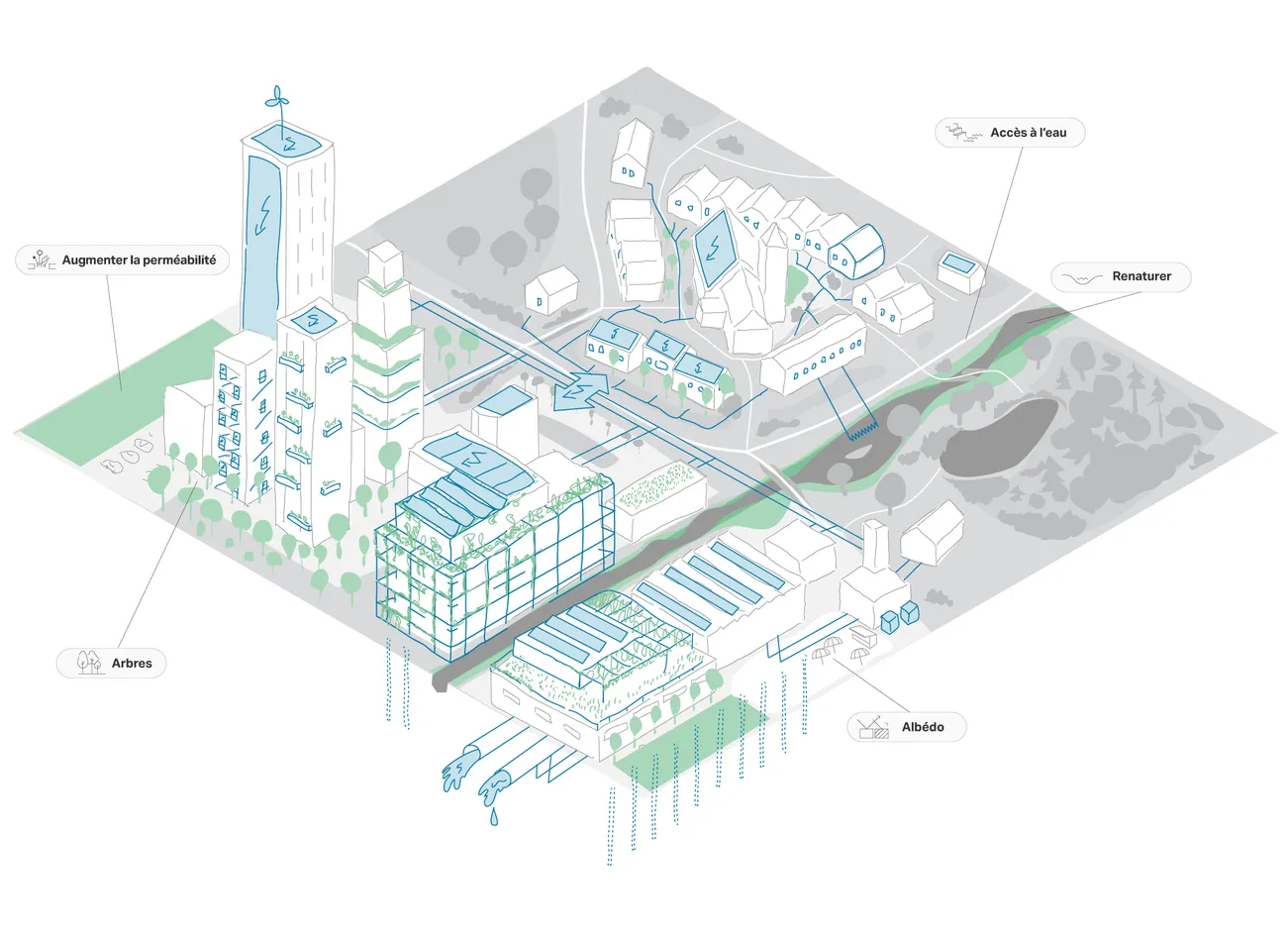 L'accès à l'eau est essentiel pour des villes dynamiques, durables et résilientes ; les sources d'eau améliorent la qualité de vie, les microclimats, les zones tampons en cas de fortes pluies et de vagues de chaleur, et favorisent la biodiversité.